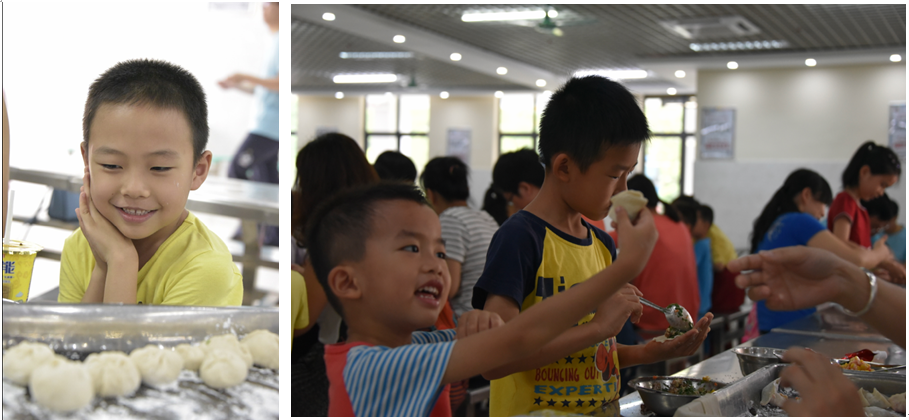 5月29日上午,在父母的带领下,孩子们欢欣跳跃地来到白云校区桂苑饭堂。面对准备好包饺子的食材,孩子们纷纷跃跃欲试,摩拳擦掌,卷起小袖子,模仿父母的做法学包饺子。孩子们一手拿饺子皮、一手拿勺子把韭菜馅、冬菇馅、玉米馅放在饺子皮上,用手轻轻地捏着,形成一个饺子。但孩子们包的饺子一个个都不听话,有的还张开大口,吃得大多合不上嘴;有的没吃饱,没力气,立不起腰;包的饺子形态各一,有园的、扁的、方的,面对成功包好的饺子,孩子们露出了天真无邪的笑容。烘焙面包、蛋糕、蛋挞引起了孩子们更大的学习兴趣,在点心师傅的指引下,孩子们个个像小点心师傅,拿着大勺子,专心致志往蛋糕、蛋挞模具倒放调配好的面粉。经过耐心的等待,香喷喷、黄灿灿、冒着热气、新鲜出炉的面包、蛋糕、蛋挞和饺子展现在大家的面前,父母和小朋友们品尝着亲手做的面包、蛋糕、蛋挞和饺子,其乐融融,别有一番情趣和风味。