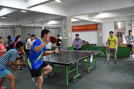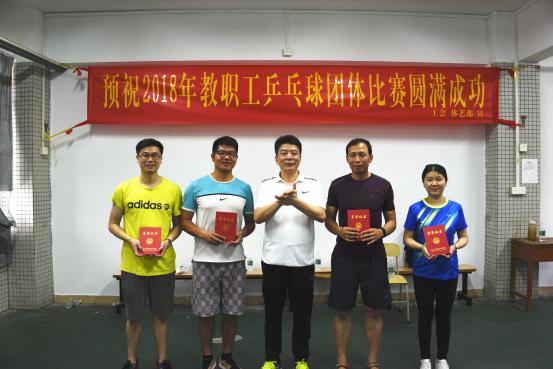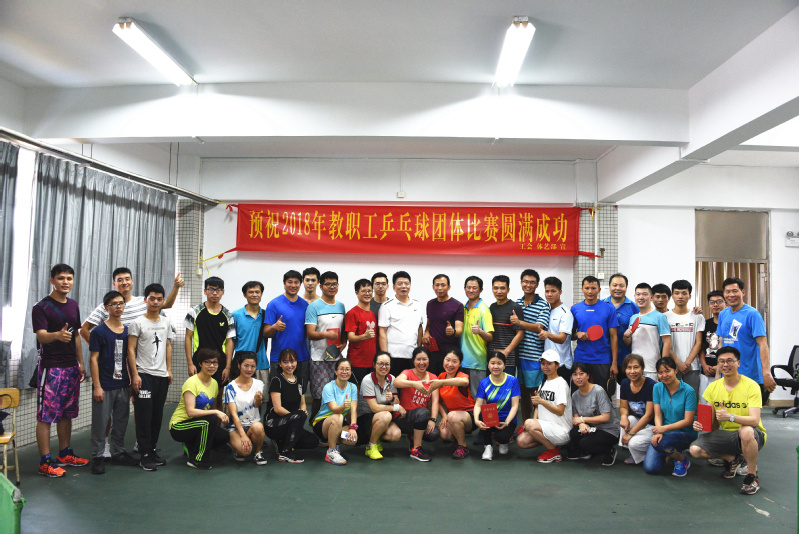 在我校深入开展学习党的十九大精神活动的高潮中,为全面落实十九大全民健康战略,丰富活跃校园文化生活,增强教职工的体质,提高教职工的乒乓球运动水平。5月19日,由学校工会主办、体育艺术部协办,我校2018年教职工乒乓球团体赛在天河校区东区乒乓球室举行,比赛共有11支队伍参赛,分为男单、女单、男双、女双、混双五个比赛项目;党委委员、副校长陈珊兴为教职工乒乓球团体赛作动员讲话,学校党委书记汤才全程参与比赛并为获得前四名的球队颁奖。