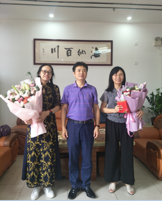 在交谈中,汤万英、敬露茜面对即将离开热爱的工作岗位,更多地表达了对学校的留恋之情、感激之情和对同事的难舍之意;祝愿学校教育事业发展蒸蒸日上、百丈竿头,祝福学校明天更美好。