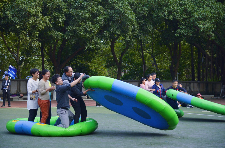 趣味运动会共有11支队伍参加,比赛设有“千锤百炼”、“狼与兔子”、“满载而归”、“多面拔河”四项项目。趣味运动会上考验的是运动员团结合作、共同奋进的精神。赛场上,教职工情绪高涨,个个生龙活虎,尽显风采,妙趣横生,场下的掌声、笑声、“加油”声、呐喊声、欢呼声不绝于耳、此起彼伏,为辛勤耕耘的广大教职工带来激情和欢乐,为砥砺奋力的工贸增添欢乐祥和的校园氛围。