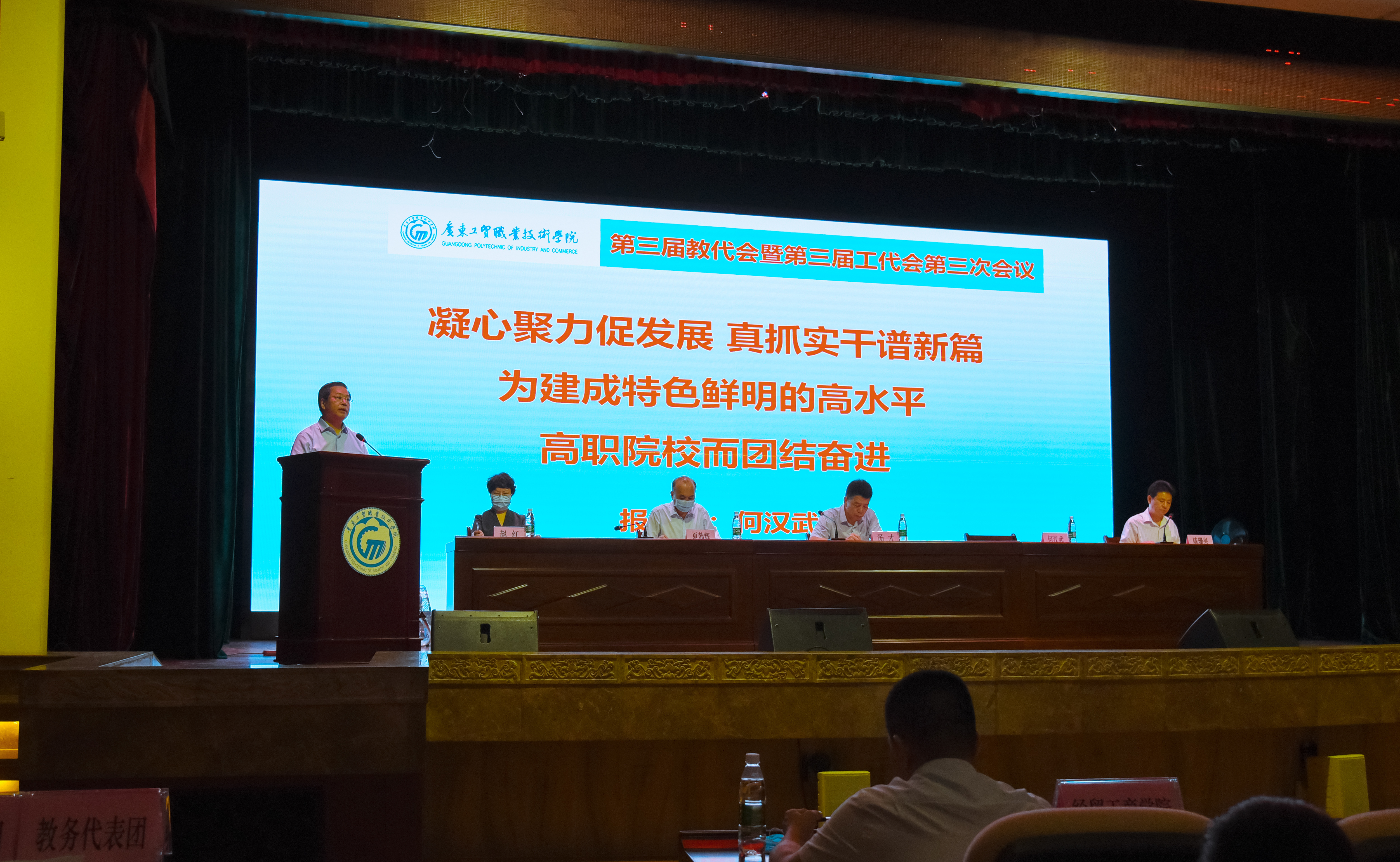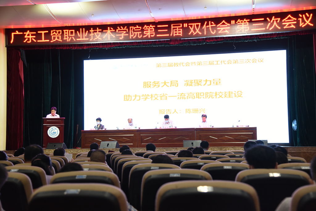 2020年7月2日上午,学校第三届“双代会”第三次会议在天河校区东区礼堂召开,学校党政领导、“双代会”正式代表、列席代表参加会议。会议由学校副校长、工会主席陈珊兴主持。