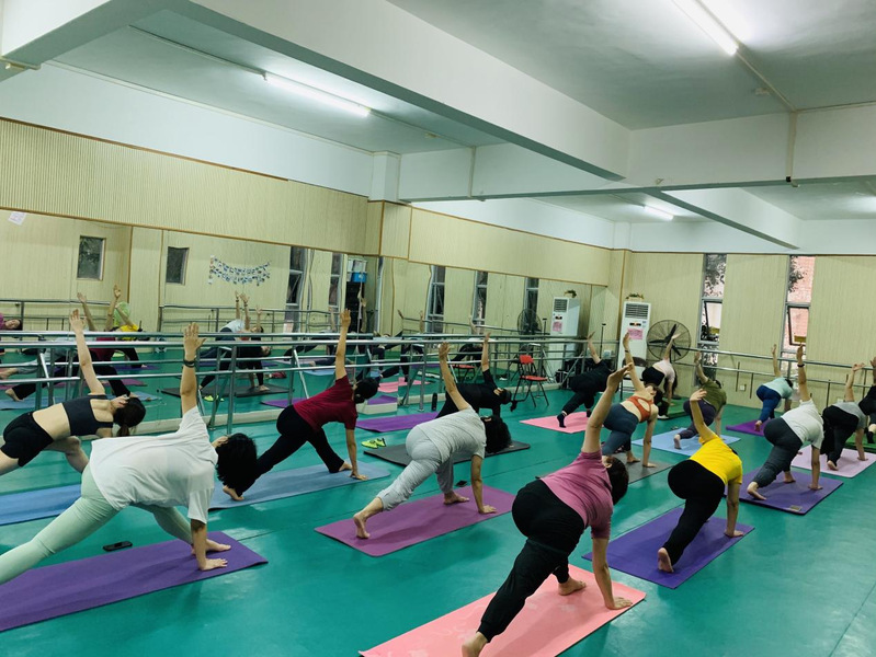 为深入落实国务院《关于构建更高水平的全民健身公共服务体系的意见》的精神,激发教职工参加体育锻炼的热情,增强体质,舒缓紧张的工作情绪,保持良好的身体状态和精神面貌,更好地为学校教育教学工作服务,经工会统筹谋划和团委的大力支持,第一期教职工瑜伽培训班于2022年5月30日在天河校区东区团委舞蹈室正式开班。