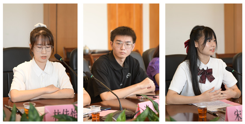 测绘学院辅导员唐婷老师和工商学院辅导员谢简老师从实际工作中出发,在爱校教育、学生发展、校友工作等多个方面发表了感言。