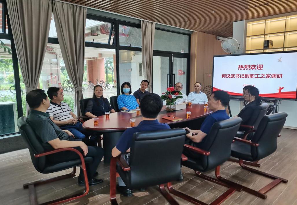 在调研过程中,何汉武与与会人员进行了亲切交流,询问各个工会小组开展工作情况,对工会小组长的工作热情和付出的辛勤努力表示赞赏和肯定;希望大家发挥教职工的创造性,调动教职工的工作热情,推动学校工会工作的创新发展。