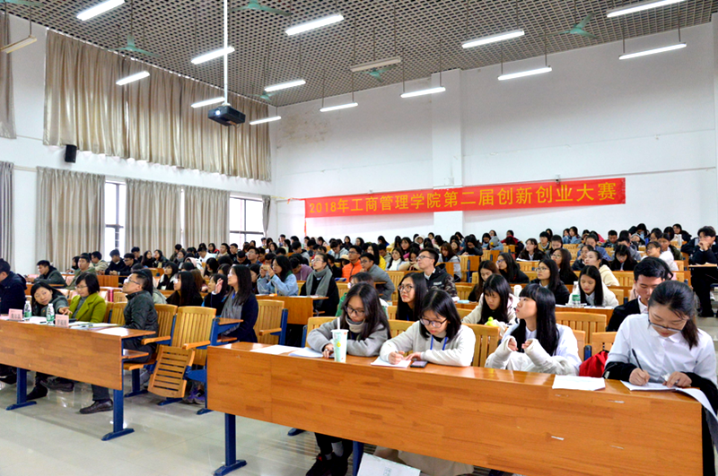 2018年12月13日下午,由工商管理学院主办、学术创新中心承办的第二届大学生创新创业大赛决赛在明德楼2-305隆重举行。工商管理学院党总支书记周清莲、副书记谢宏祥,评委老师崔淑琴教授、曾晓秋副研究员、袁年英副教授,以及部分辅导员、指导老师等共250多名师生参加本次大赛。