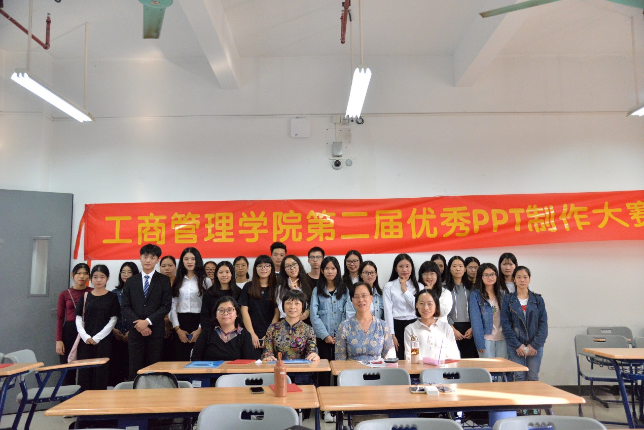 为推动学生素质的全面发展,丰富师生课余校园生活,我校白云校区工商管理学院于2018 年12 月4 日下午在明德楼2-413 举行第二届优秀PPT制作与展示竞赛。本次比赛旨在提高学生自主学习PPT 制作等职场办公技能的积极性,提高学生的职场展示和项目汇报的能力,提高学生勇于表现自己,表达自我的信心。同时起到鼓励广大学生踊跃参加课外社会调研活动,开拓眼界和知识面,培养创新精神,增强校园活力的积极作用。出席本次活动的老师分别有陈植乔老师、朱艳敏老师、代月平老师以及刘云丽老师。