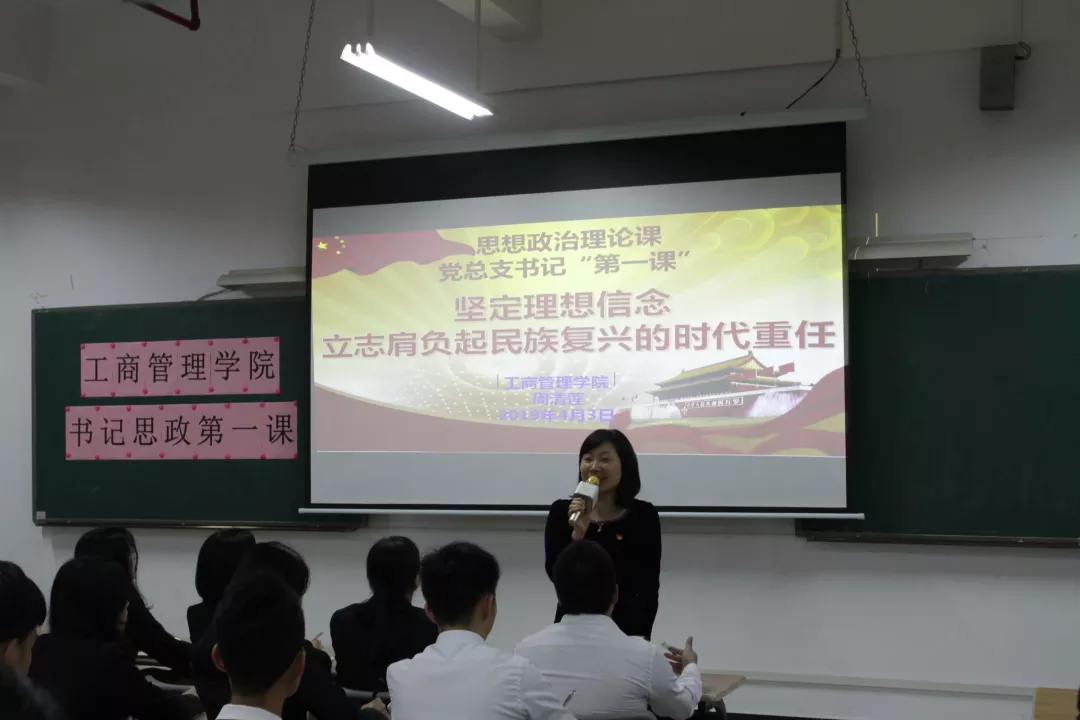 为了坚定当代大学生的理想信念,使之肩负起民族复兴的时代重任,2019年4月3日,工商管理学院在明德楼2区602开展了以“坚定理想信念,立志肩负起民族复兴的时代重任”为主题的思政“第一课”,由工商管理学院党总支书记周清莲主讲,全体学生党员、发展对象和团学组织干部共110人参加。