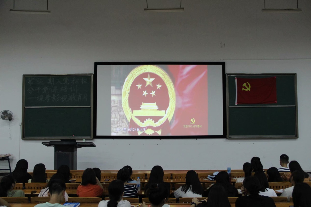 2019519日上午,我校第32期入党积极分子党课培训班第七次专题培训在白云校区举行,全体学员集中明德楼观看了教育片《党章电视辅导教材》。