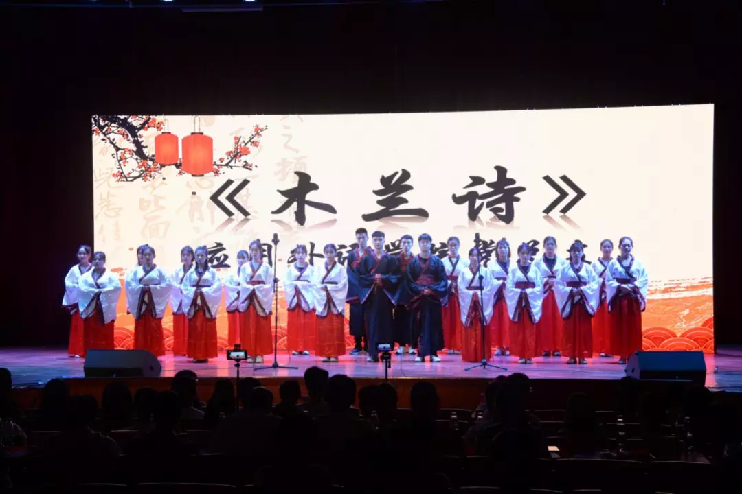 “戎马关山报国志,木兰从军美名传”。千百年来,木兰代父从军脍炙人口,鼓舞了无数中华儿女戎马关山报国志。应用外语学院党总支代表队带来作品《木兰诗》,展示了替父出征巾帼女英雄的形象,演绎出了爱国情怀之伟大。