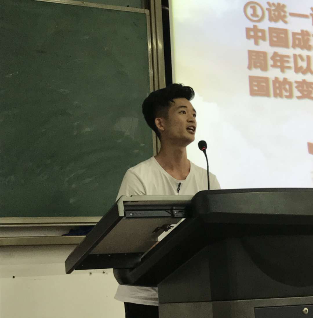 冯永锋等同学以新中国成立70周年以来居民家庭“三大件”的变迁史入手,以小见大,从身边细微的角度来窥探时代的变迁,也谈到了他们对当下“中美贸易战”的思考与忧虑。他们提出,要始终对祖国发展前景充满信心,要始终对走中国特色社会主义这一道路充满自信。