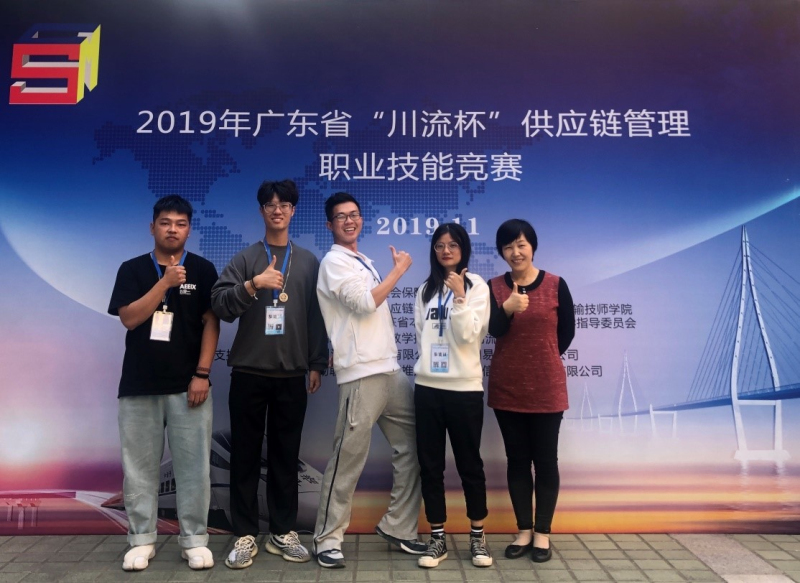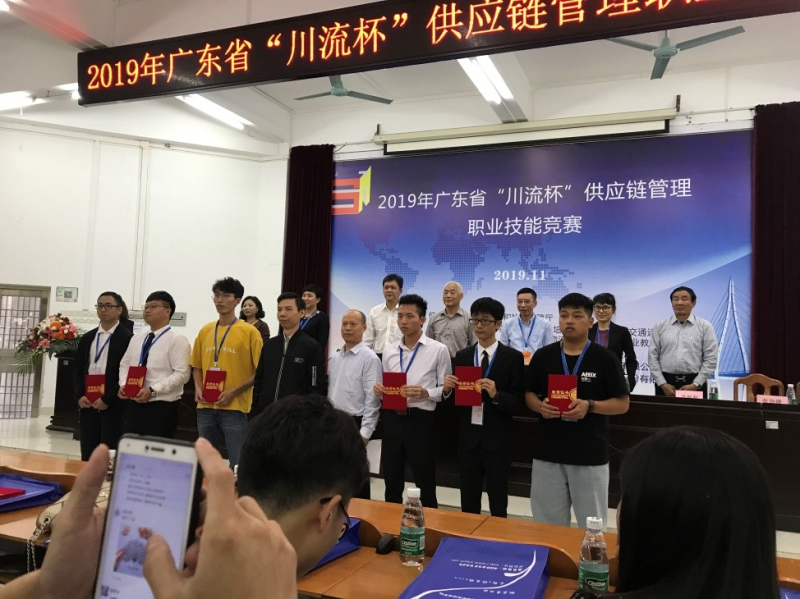 2019年11月24日,由广东省人力资源和社会保障厅主办的第一届广东省“川流杯”供应链管理职业技能竞赛决赛在广东交通运输技师学院拉开帷幕。我校19级物流专业陈嘉楷、陈家铭、黄仲康、胡妙如四位同学在10月初校内选拔赛中脱颖而出,代表学校参加本次比赛。11月前三周,他们在连茜平老师带领下连续打了三场积分赛。全省60支队伍参加积分赛,只有排名前20名的队伍才能参加决赛。这四位同学以第13名的成绩成功闯入决赛。决赛当天,他们经过理论考试和现场对抗赛的重重考验,最终荣获职校组二等奖佳绩。