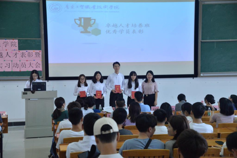 2020年10月27日下午,工商管理学院在明德楼2-305召开了2019-2020学年卓越人才表彰暨苏宁物流顶岗实习动员大会。工商管理学院党总支书记周清莲、副书记谢宏祥、副院长倪春丽、专任教师、辅导员及18、19级商管专业180多名学生共同参加了会议。