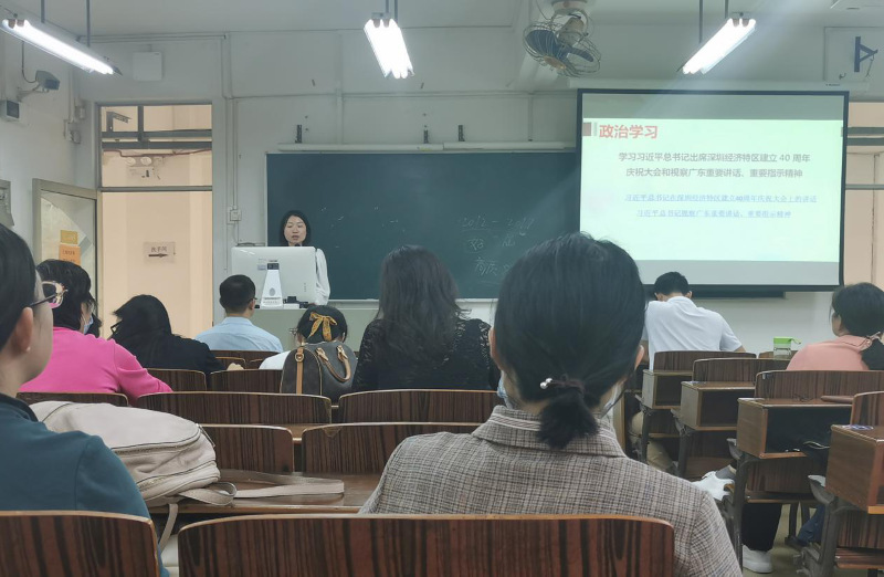 接着,周清莲与教职工一起学习了党的十九届五中全会精神、学习习近平总书记出席深圳经济特区建立40周年庆祝大会和视察广东重要讲话、重要指示精神。党的十九届五中全会是在即将实现第一个百年奋斗目标、开启全面建设社会主义现代化国家新征程的关键时刻召开的一次十分重要的会议,对于奋力夺取全面建设社会主义现代化国家新胜利、实现中华民族伟大复兴中国梦具有重大意义,我们要深刻认识总书记重要讲话、重要指示的重大意义,切实增强思想自觉、政治自觉和行动自觉。在“两个一百年”奋斗目标历史性交汇的关键时期,在广东纵深推进“双区”建设、深圳经济特区建立40周年的重要节点,总书记再次来到广东这片改革开放的热土,对广东的改革发展具有重要的里程碑意义,要深刻领会总书记对广东的亲切关怀和厚望重托,努力为国家发展作出新贡献。
