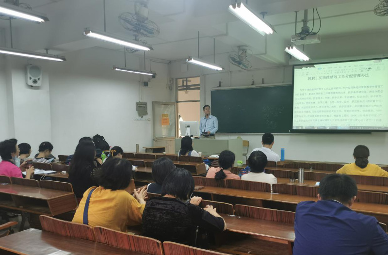 为充分调动全体教职员工的工作积极性,在切实保障完成常规教学和管理工作的前提下,重点引导教职工开展教育教学改革、教学条件建设等,结合文科学院实际,制定了二级学院事业编制聘用人员奖励性绩效工资分配办法。在教职工大会上,工商管理学院院长邹德军带领学院教职工进一步了解、讨论了《教职工奖励性绩效工资分配管理办法(讨论稿)》的组成部分和内容,与此同时广开言路征求教职工对管理办法的意见和建议,提高可行性操作,进一步完善该方案。