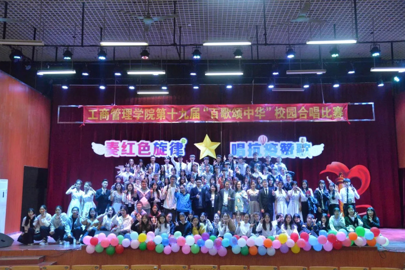 天河校区参赛的队伍都是来自19和20级的工管、互金专业的学生。天河工商管理学院9个班级,用独具匠心的唱法和服饰、朝气磅礴的歌声和旋律歌颂了中华民族自强不息的伟大精神。随着校歌《放飞梦想》的响起,通过唱响《你安好,我无恙》、《无名之辈》、《仰望星空》等熟悉的旋律。唱响了对祖国的热爱和抒发内心最炽热的爱国情感。
