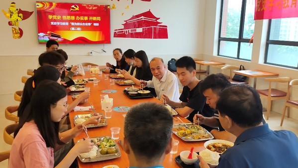 调研会结束后,夏韩辉邀请师生代表共同参与“学校领导午餐会”活动,在共进进餐的同时与同学们亲切交流,畅谈校园学习工作生活点滴,为学生成长发展给予指导和鼓励,并希望大家坚定理想信念,锤炼品德修养,练就过硬本领,服务于学校双高计划建设,以实际行动和优异成绩献礼建党一百周年。