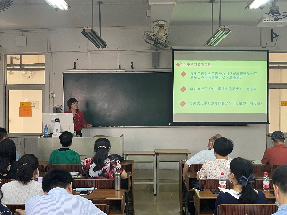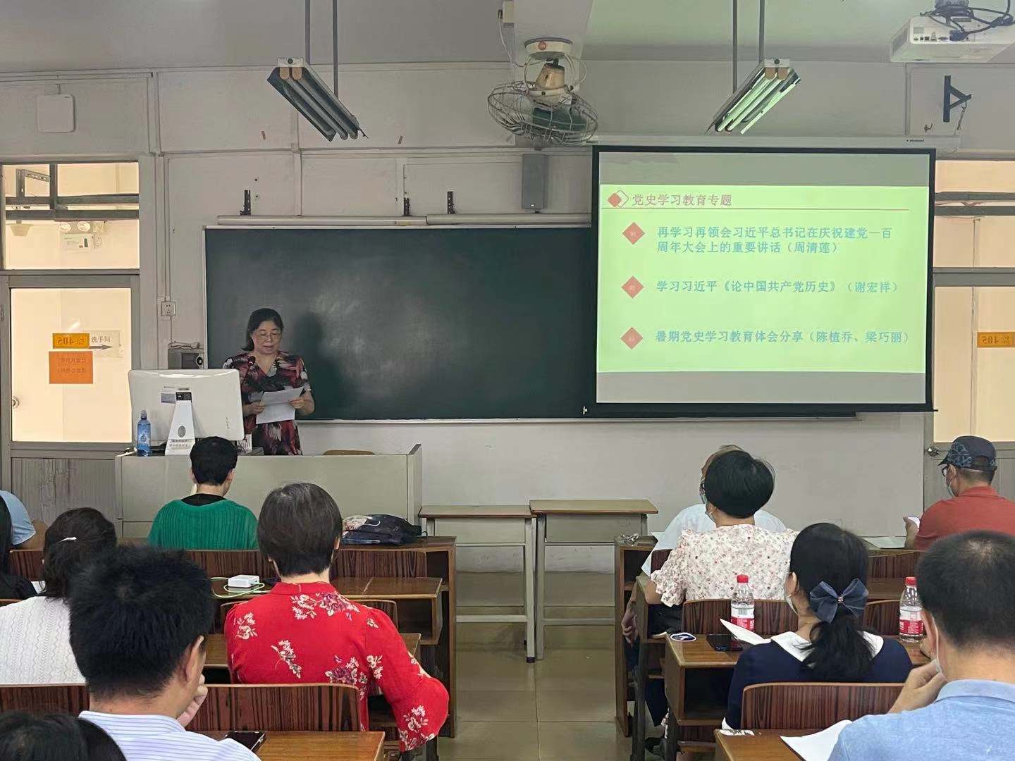 学院党总支副书记谢宏祥带领大家学习习近平《论中国共产党历史》,从党的百年伟大奋斗历程中汲取继续前进的智慧和力量,更好的做到学史明理、学史增信、学史崇德、学史力行,学党史、悟思想、办实事、开新局。随后,陈植乔、梁巧丽两位教师党支部书记就暑期的党史学习教育进行了体会分享。