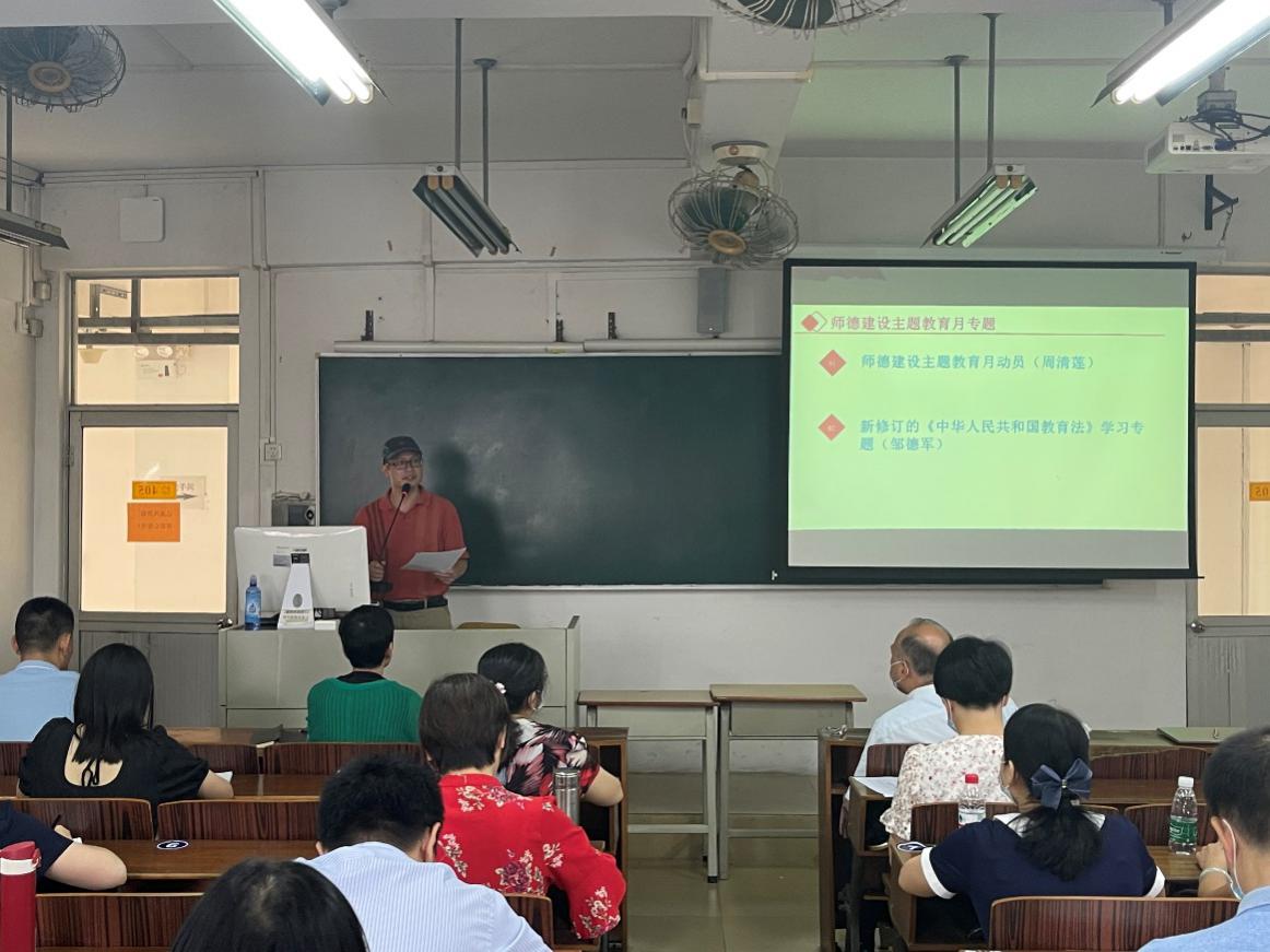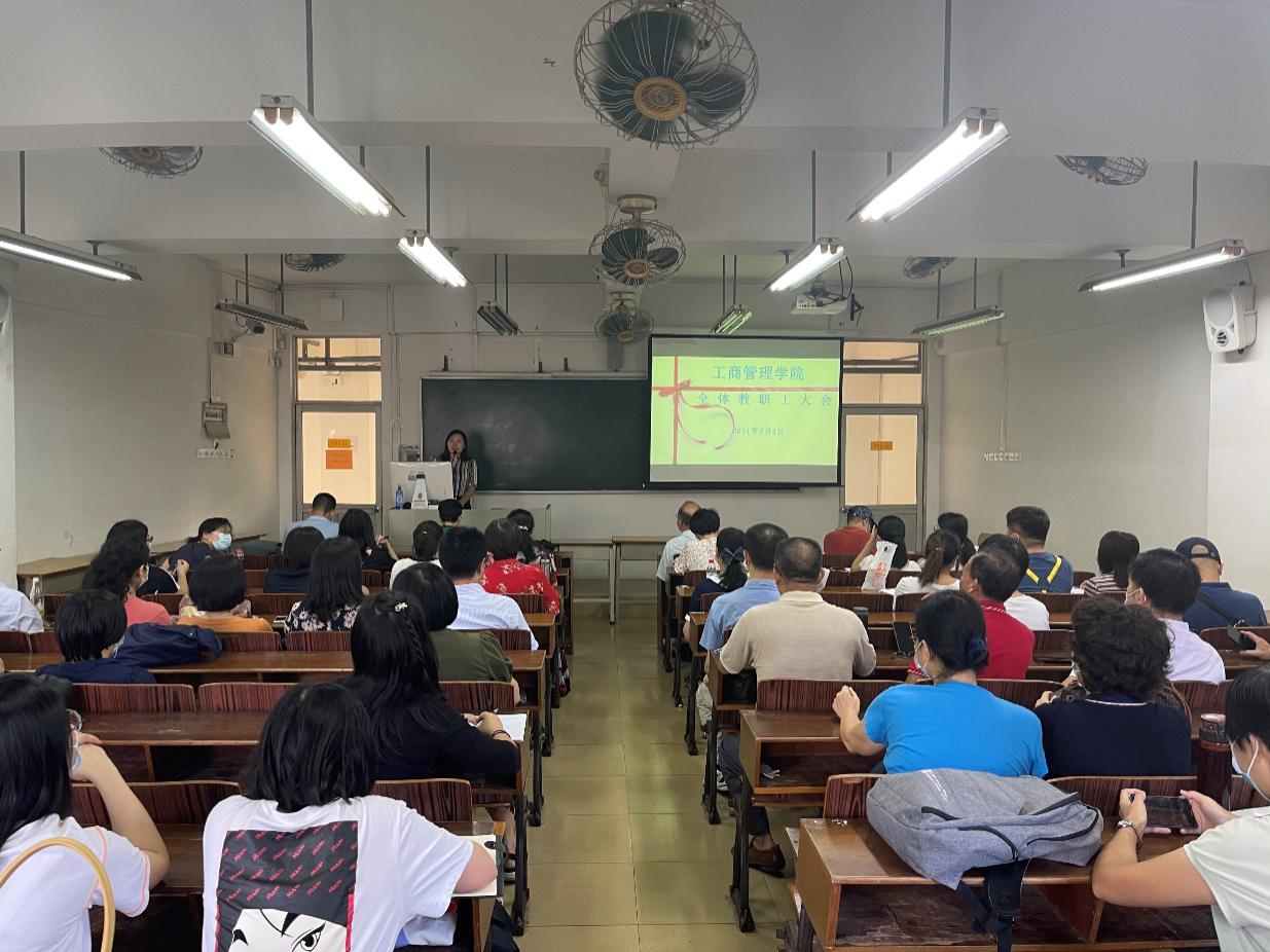 9月4日下午,工商管理学院在天河校区西区504召开全体教职工大会。会议由工商管理学院党总支书记周清莲主持,工商管理学院联系校领导——学校党委副书记、纪委书记夏韩辉出席会议。