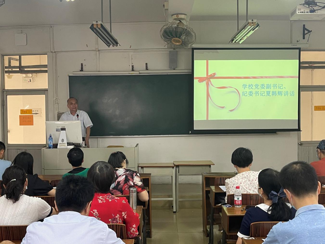 会议最后,夏韩辉发表讲话。他指出,要加强党对学院工作的全面领导,抓牢政治建设,牢牢把握干部队伍和教师队伍建设,加强基层党组织建设,扎实开展好党史学习教育。同时要切实增强责任意识,坚持以师生为中心,扎实有效开展“我为群众办实事”。最后,对全院教职工提出希望,加强学习,用习近平新时代中国特色社会主义思想铸魂育人,争做“四有”教师,以饱满的热情投入到新学期工作中。