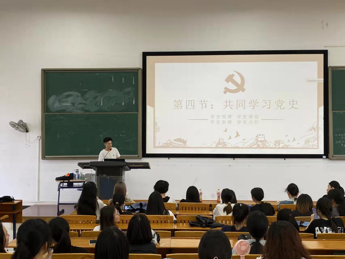 928日下午,为深入学习贯彻落实习近平总书记关于党史、新中国史、改革开放史、社会主义发展史学习的重要讲话和指示精神,持续深化爱国主义教育,传承红色基因,不断增强听党话、跟党走的自觉性。校学生党史宣讲团成员张跃带领工商管理学院20文秘2班团支部展开线下党史宣讲活动。
