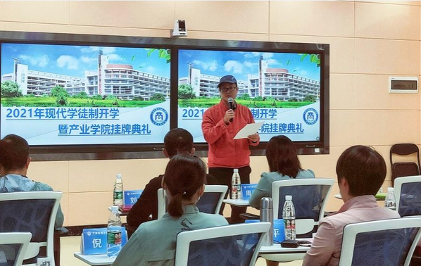 此次开学典礼是工商管理学院连续三年开展现代学徒制发展建设新的里程碑。我院与各企业共建中始终紧密围绕企业需求,不断推进产教融合、校企合作,积淀了深厚的行业底蕴、成熟的办学理念、精良的师资队伍和丰厚的校友资源。我院将与产业学院内各总部企业通力合作,保障现代学徒制项目扎实推进,将现代学徒制办出质量,做出成效,打造具有示范作用的现代学徒制典范。