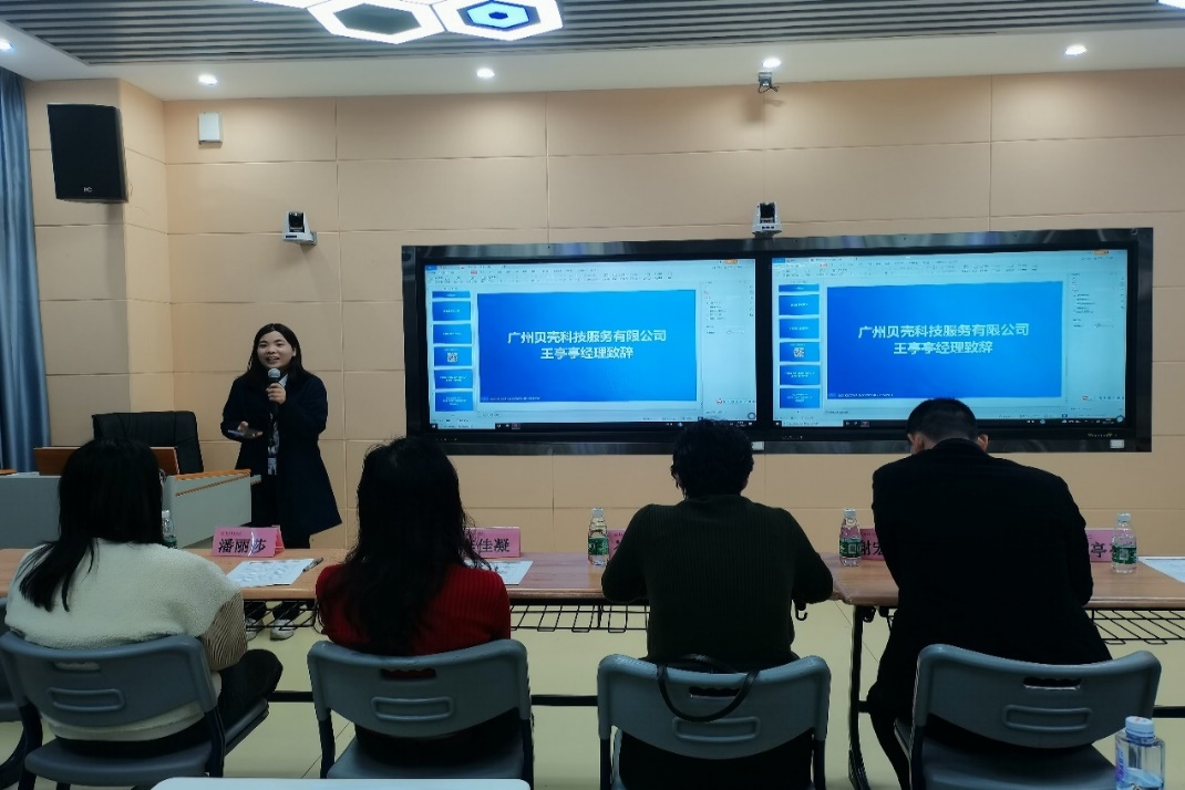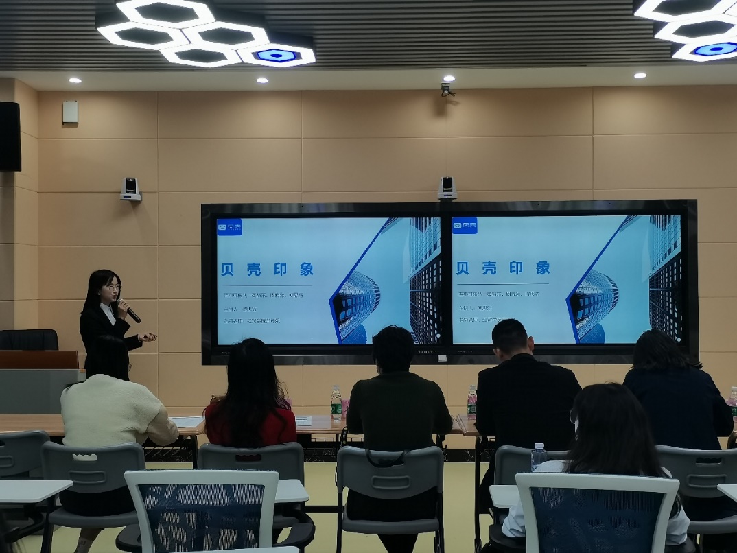 比赛临近尾声时,王亭亭经理作总结讲话,为学校对本次“贝壳杯”短视频营销大赛的大力支持以及对积极参与比赛的同学表示衷心的感谢。
