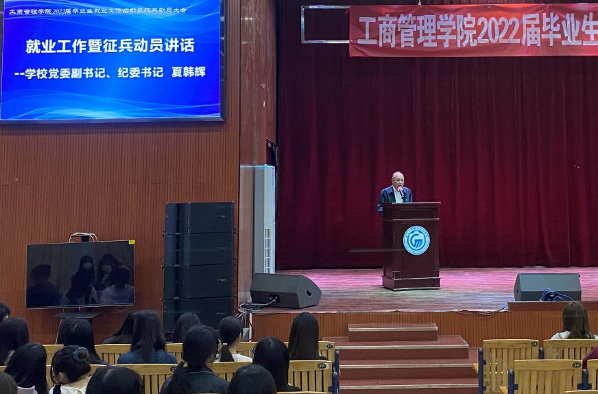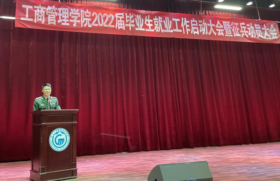为进一步做好2022届毕业生就业及征兵工作,帮助毕业生尽早熟悉就业政策、了解就业形势、把握就业机会,11月29日晚,工商管理院在白云校区明德楼2-105演艺厅召开2022届毕业生就业工作启动暨征兵动员大会。学校党委副书记、纪委书记夏韩辉、武警军犬基地第二军犬队政委罗贤标、学院党总支书记周清莲、副书记谢宏祥、辅导员李佳凝、王丹及2022届毕业生参加大会。大会由谢宏祥主持。