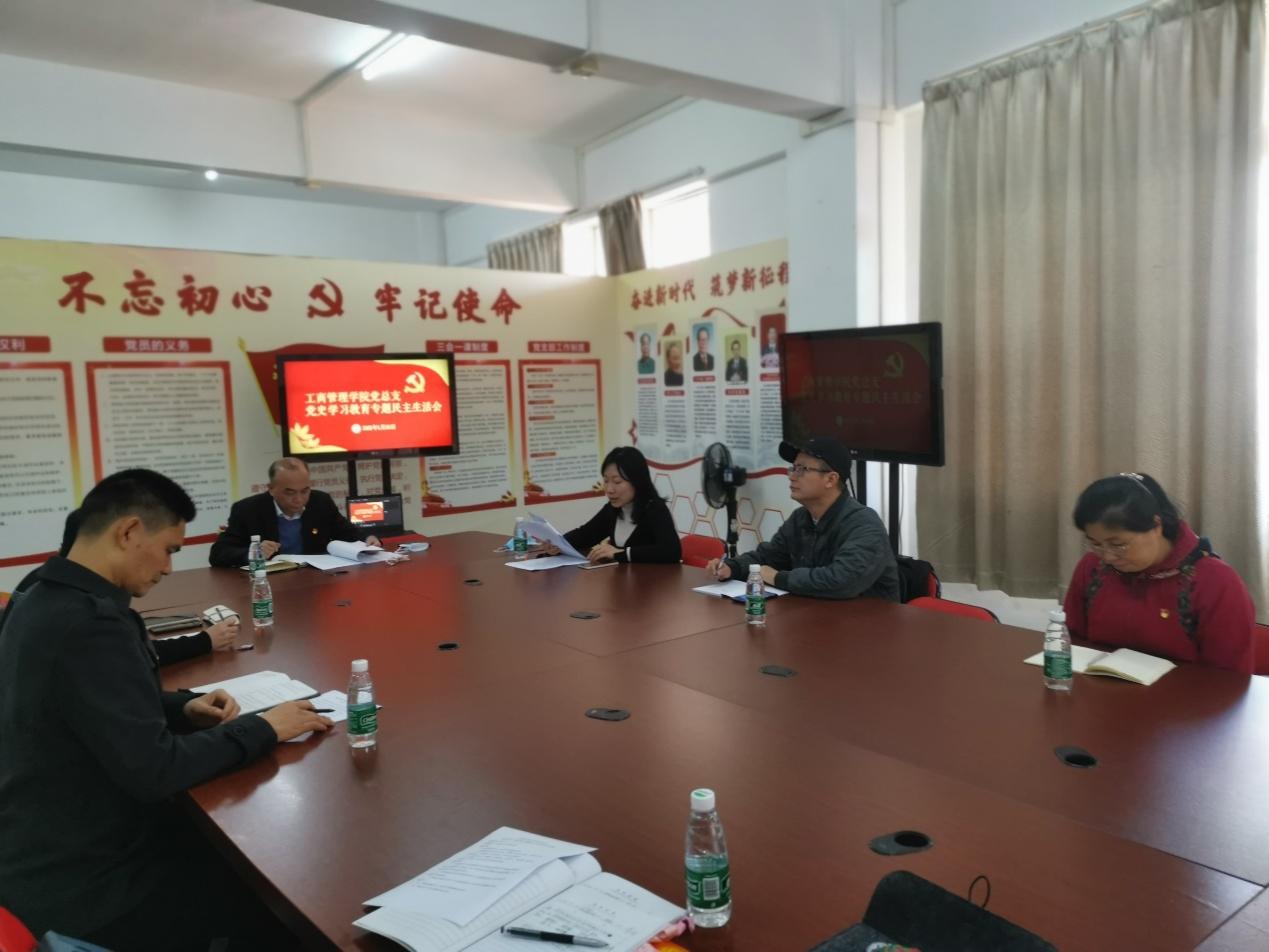 为弘扬伟大建党精神,回顾一年来学院党总支领导班子加强自身建设情况,1月20日下午,工商管理学院党总支在天河校区党团共建会议室召开党史学习教育专题民主生活会。学校党委副书记、纪委书记夏韩辉,工商管理学院党总支领导班子全体成员出席了会议。