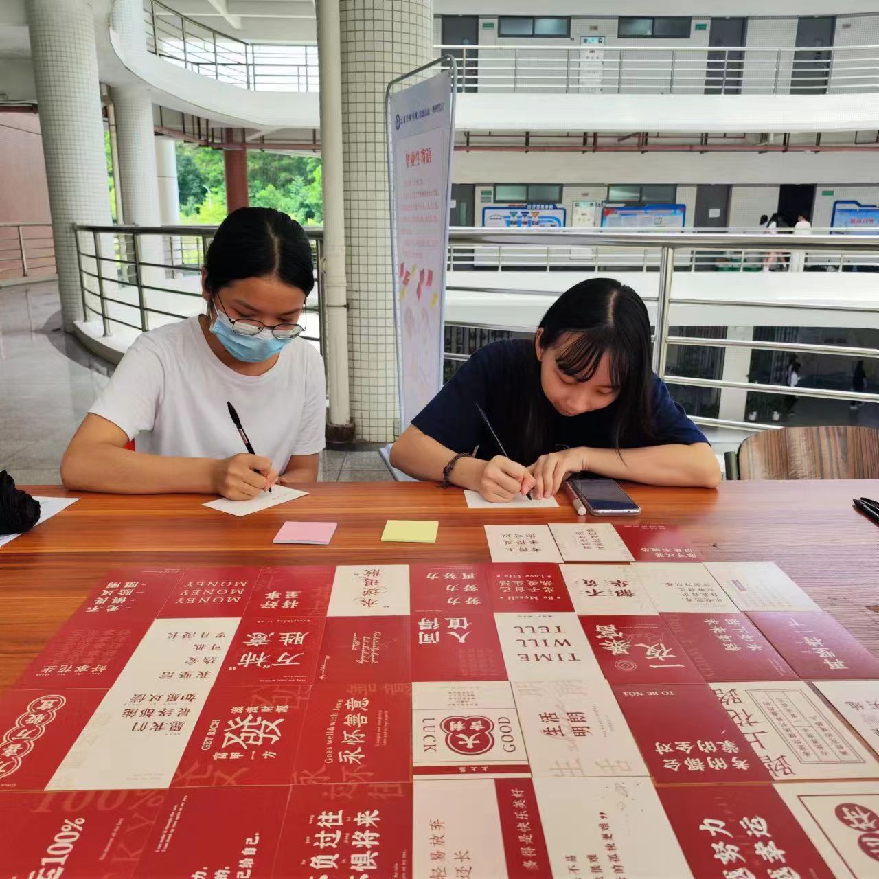 活动伊始,天河校区与白云校区的毕业生党员有序地在“祝愿明信片”和“寄语留言板”上写下寄语,为入学在即的2022级新生送上他们最真挚的祝福。毕业生党员们从“学”与“做”两个角度入手,寄语新生要学而深、学而思、学而用,以“信仰之笔”写下青春坚守,以“担当之墨”写下青春奉献。