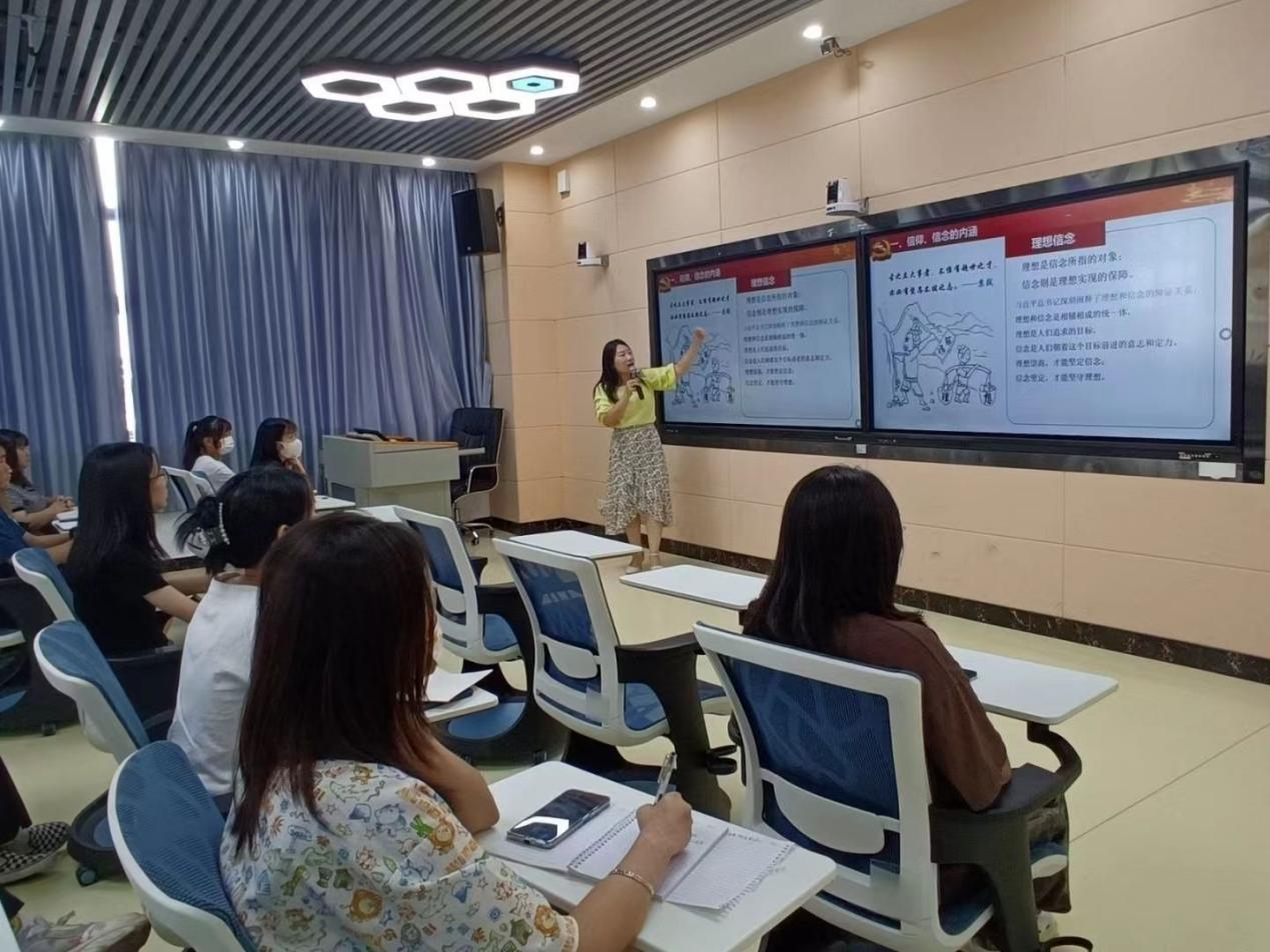 课堂上周清莲引用很多中国共产党员的事迹,呈现了千千万万中国共产党人心中无比坚定的远大理想和革命信念。她指出,理想信念是中国共产党人的精神支柱和政治灵魂,也是保持党团结统一的思想基础,有了坚定的理想信念,有了以习近平同志为核心的党中央坚强领导,在错综复杂的国际国内形势下,党和国家才能取得过去5年的巨大成就和新时代10年的伟大变革,赢得脱贫攻坚战的全面胜利,开启全面建设社会主义现代化国家新征程。随后,当谈到我国青年大学生的时代重任时,周清莲以PPT上一组醒目的数据告诉我们,一代代充满救国报国强国志气的优秀青年,把青春和热血融入祖国江河,展示了磅礴力量!青年的命运,从来都同时代紧密相连。展望未来,我国新时代青年必将大有可为,也必将大有作为。