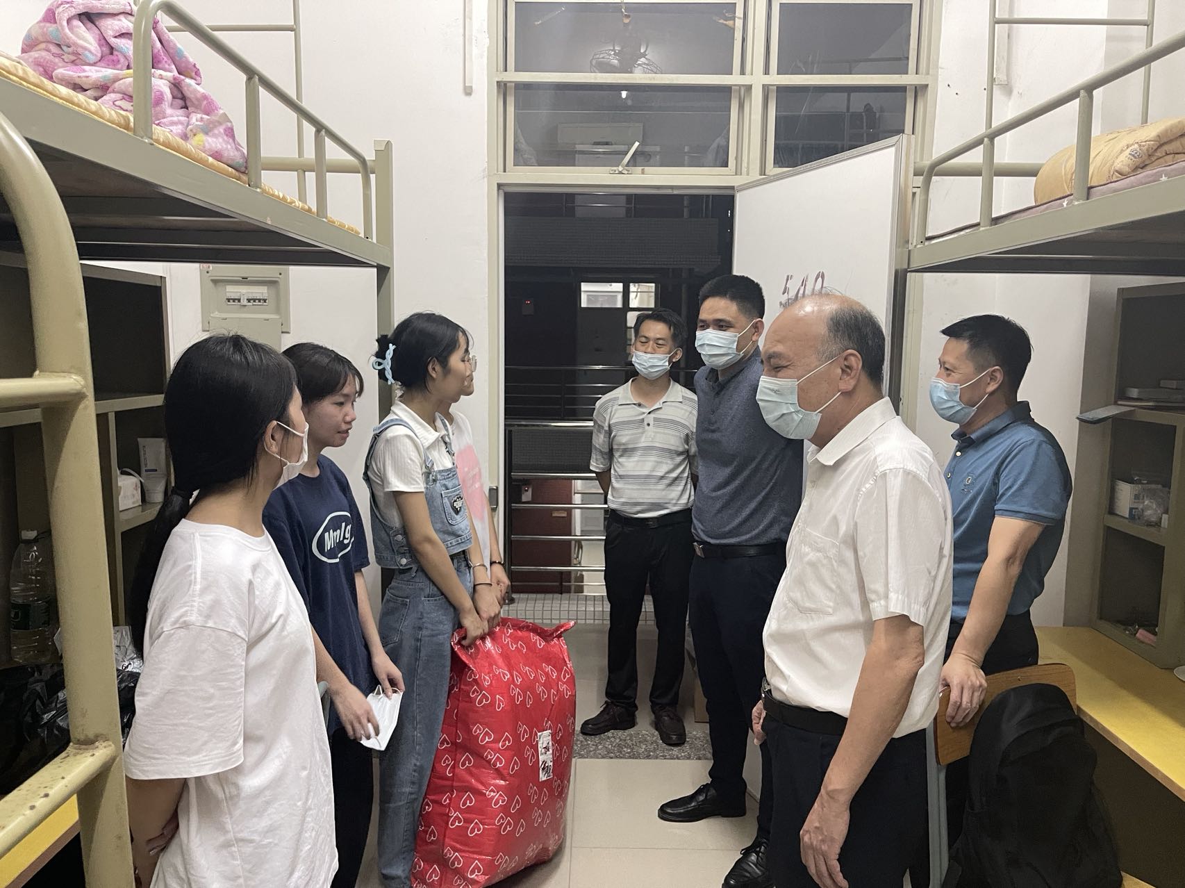 为了贯彻落实省委教育工委《学校领导干部深入基层联系学生工作的实施方案》的文件精神,积极开展学校领导干部深入基层联系学生工作,2022年9月3日晚,学校党委副书记、纪委书记夏韩辉深入工商管理学院2022级学生宿舍开展调研走访,学生处处长刘建军、团委书记陈冠锋、工商管理学院党总支副书记谢宏祥、工商管理学院辅导员李佳凝也参加了本次走访。