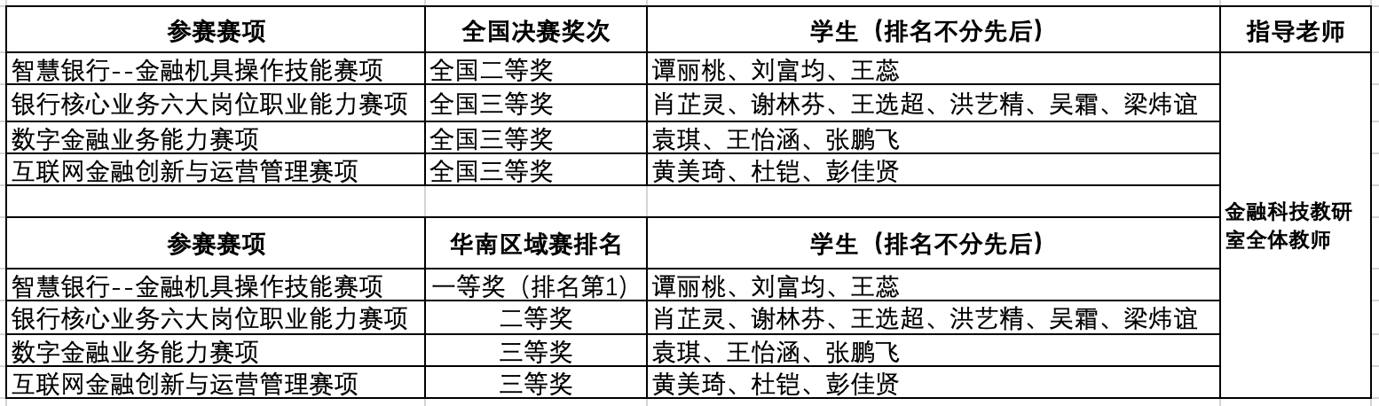 由全国高校金融创新大赛组委会举办、注册金融科技分析师协会及国际注册理财师学会做指导单位、由典阅教育承办的“2022年第七届全国大学生金融创新大赛”华南区域赛及全国决赛分别于2022年10月22日和11月12日在我校举行。分设智慧银行-金融机具操作技能赛项、银行核心业务六大岗位职业能力赛项、保险创新科技赛项、互联网金融创新与运营管理赛项、数字金融业务能力赛项等5项专业赛事。