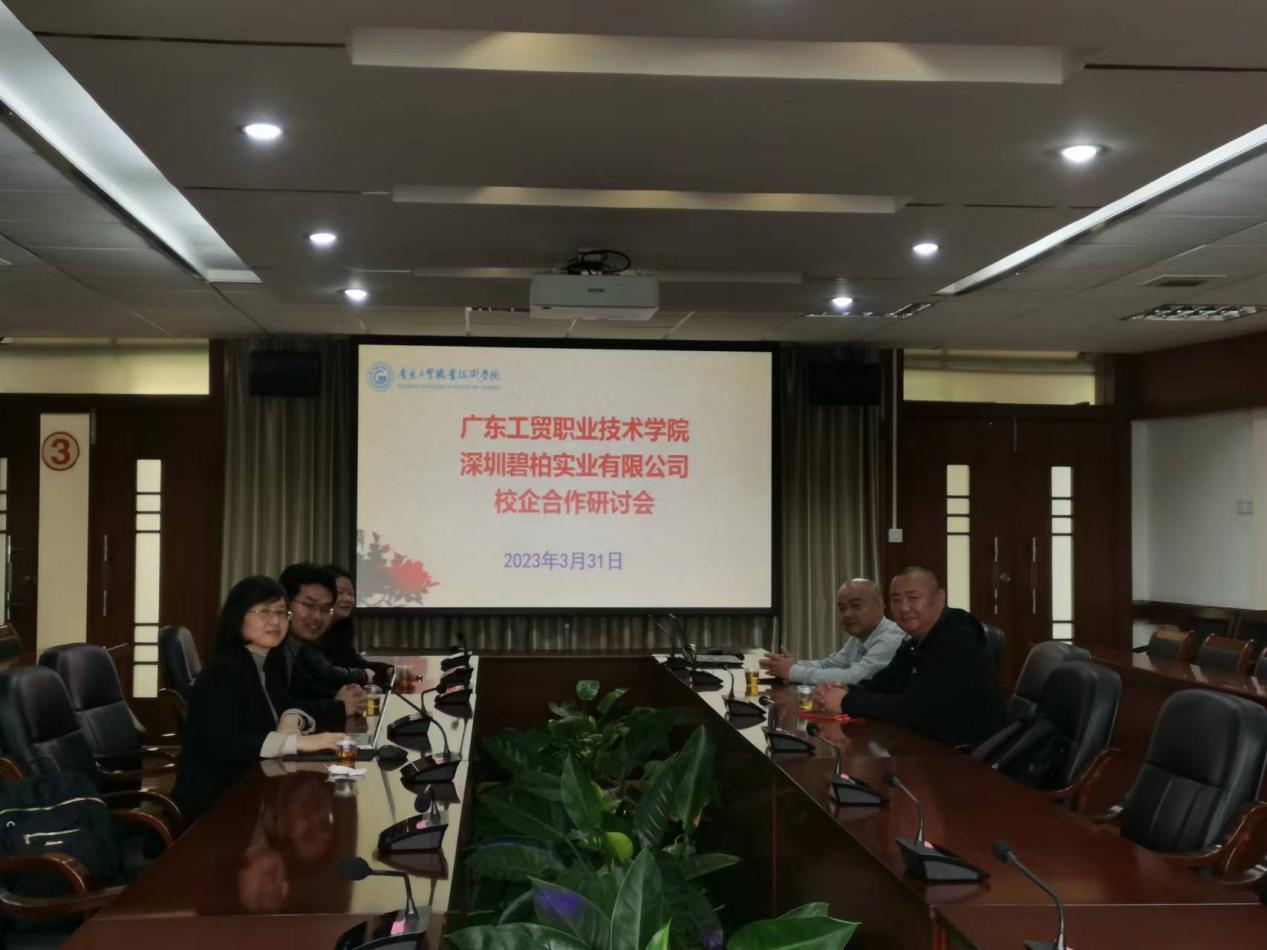 3月31日,工商管理学院在西区中心会议室召开广东工贸—深圳碧柏产教融合研究会。工商管理学院院长邹德军、财税服务系系主任胡建平、副主任邹建军、工商管理学院教师袁年英、深圳市碧柏实业股份有限公司王建强经理和屈刚经理参加会议。