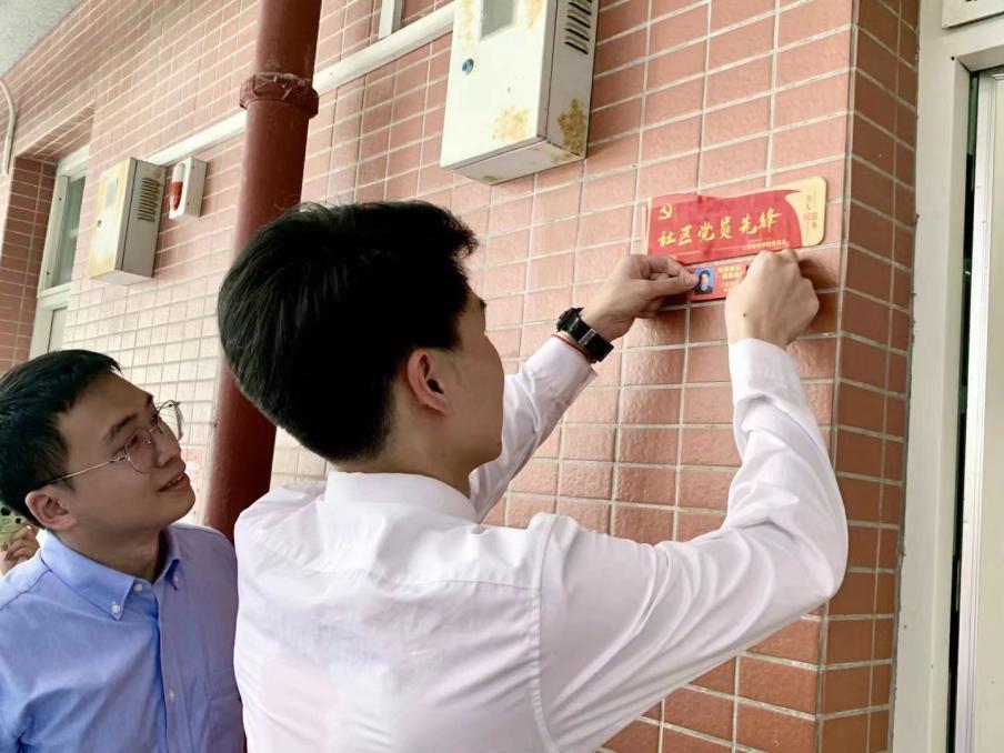 为学习贯彻习近平新时代中国特色社会主义思想,切实增强学生党员的责任感使命感,充分发挥党员先锋模范作用,促进宿舍文明建设,工商管理学院党总支于5月30日下午在子勤书院2号楼举行党员宿舍亮身份挂牌仪式。工商学院党总支书记周清莲、学生党支部书记谢简、韩天瑶、党群服务中心指导老师王丹及学生党员参加。