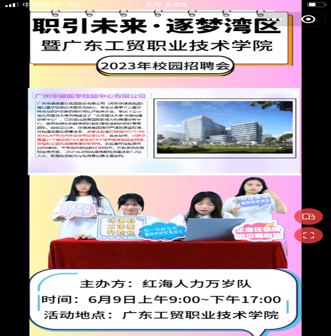 为进一步贯彻落实党的二十大精神和习近平总书记在中共中央政治局第五次集体学习时的重要讲话精神,扎实推进学习贯彻习近平新时代中国特色社会主义思想主题教育,推动产教融合高质量发展,提升人才培养质量,工商管理学院引入校企合作单位广州黄埔红海人才服务有限公司“直播带岗”项目,于6月12日至21日在工贸白云校区组织开展22级人力资源管理专业课程实训,取得良好成效。