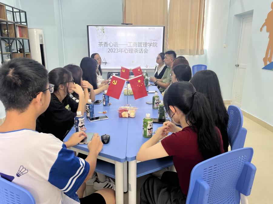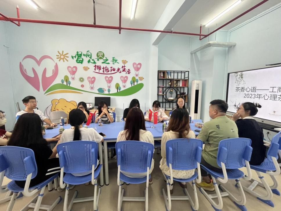 为推动学习贯彻习近平新时代中国特色社会主义思想走深走实,结合工商管理学院推动学生成长成才发展专题调研方案,提高心理委员们的积极性和凝聚力,坚定责任心和对心委工作的热爱之心,强化心理委员角色的归属感和认同感,提高心理育人的效果,6月26日,工商管理学院在白云校区16栋12楼举办茶香心语——工商管理学院2023年心理茶话会。本次活动由工商管理学院辅导员欧阳翠婷主持人,工商管理学院辅导员王丹、杨兴花以及11位学生参加了本次活动。