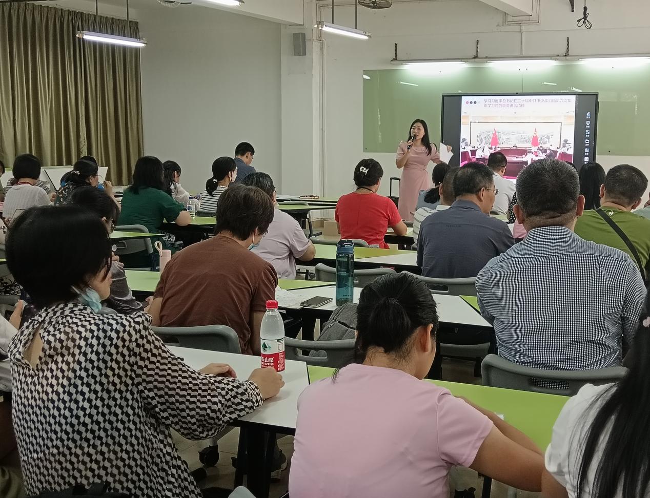 周清莲带领学院全体教职工集中学习政治理论
