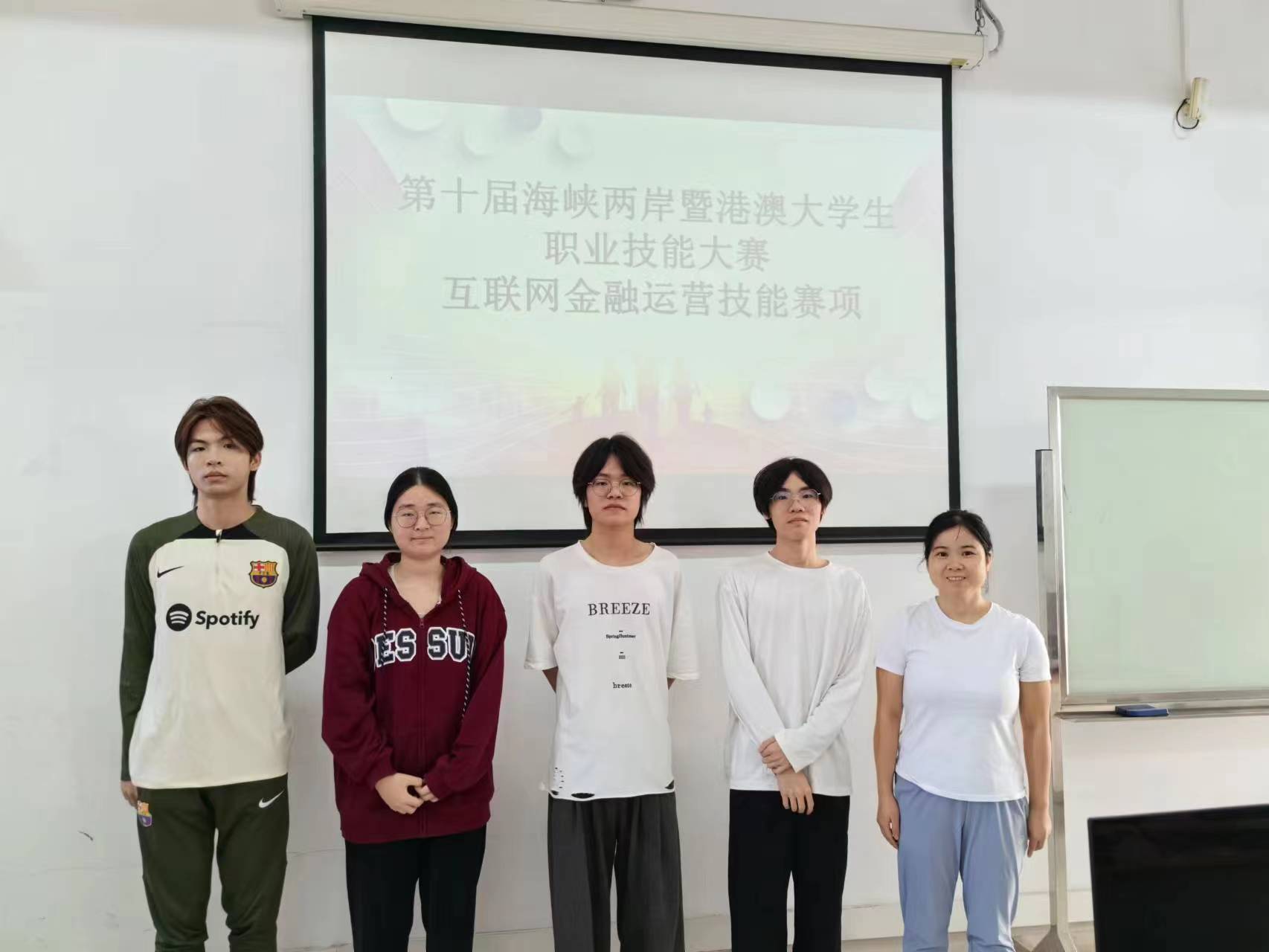 11月5日由福建省教育厅等单位主办的第十届海峡两岸暨港澳大学生职业技能大赛之互联网金融运营技能赛项顺利开赛,该项比赛吸引了来自海峡两岸本专科院校共计43所高校参与。我院来自22级金融科技应用专业郭哲宁、袁琪、陈星、刘富均四位学子,在曾鸣、叶方方两位指导老师带领下参加了该项比赛。该比赛以金融科技复合型人才就业需求为导向,具体内容包括第三方支付、互联网征信、消费金融、大数据金融、互联网保险、互联网银行、反金融诈骗、金融系统性风险模拟仿真等基本操作技能要求。
