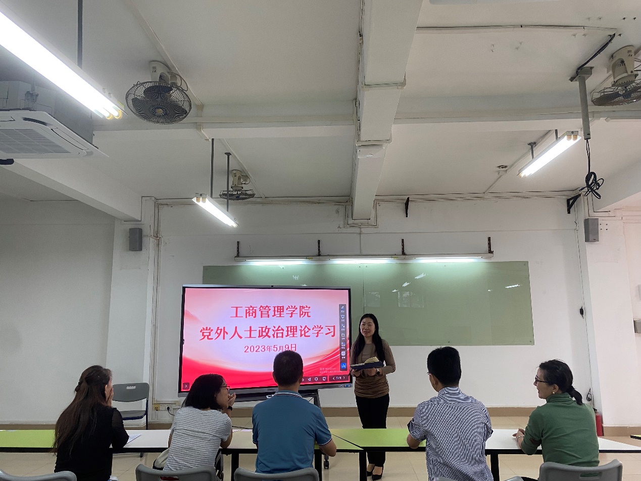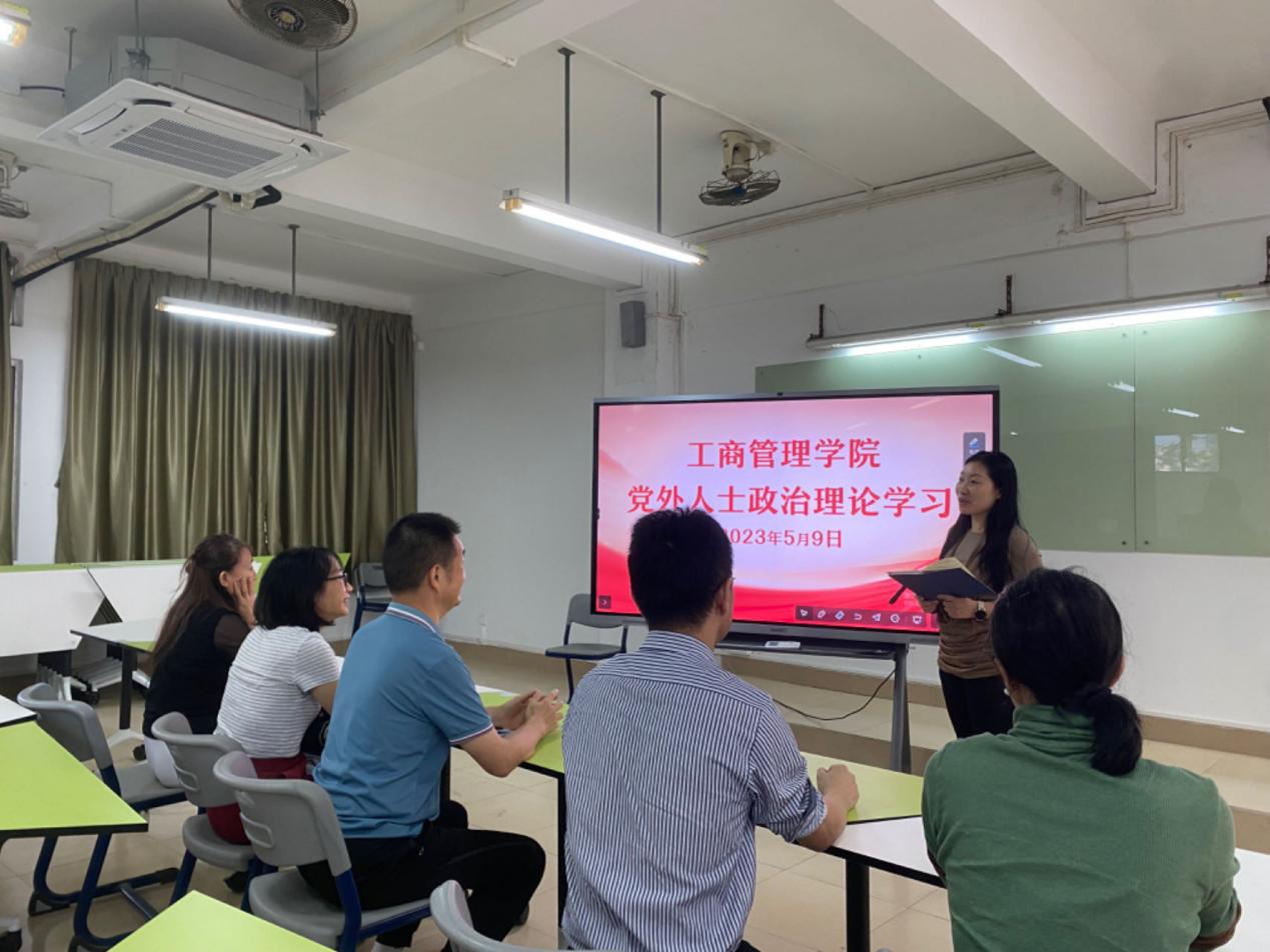 5月9日下午,工商管理学院在天河校区东区教学楼205组织开展党外人士政治理论学习,工商管理学院党总支书记周清莲主持,工商管理学院代各民主党派教师和群众代表参与学习。