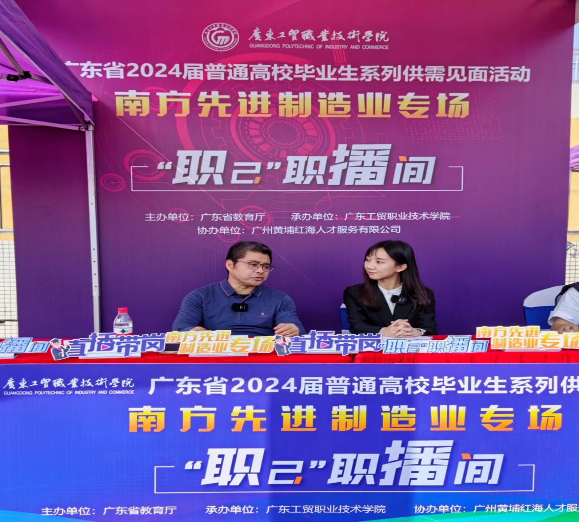 依托本次招聘会,工商管理学院与校企合作党建共建单位——广州黄埔红海人才服务公司党支部合作,组建人力资源专业师生党员和毕业生党员团队,承接招聘会现场“职己”直播间活动,对本次招牌会参会企业进行线上直播带岗。直播过程中毕业生可在线提问、与用人单位互动,同时具有视频回看功能,打破了时间和空间限制,有效扩大招聘宣讲覆盖面。直播人员对各招聘单位的企业文化、岗位需求等方面进行具体介绍,帮助校内外毕业生直观了解招聘现场的最新情况。