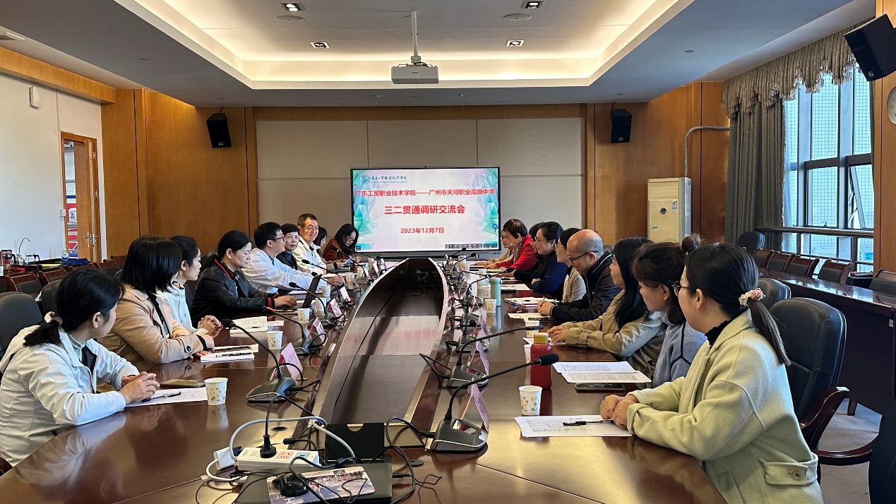 为推进三二贯通培养工作,2023年12月07日上午广州市天河职业高级中学陈磊明部长一行等10人,到我校白云校区与工商管理学院开展三二贯通调研交流会。工商管理学院邹德军院长、倪春丽副院长等9人参加了本次交流会。