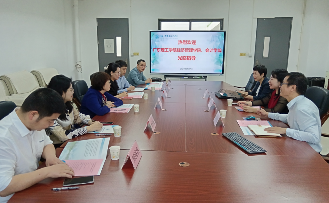 为促进教育教学高质量发展,3月27日上午,广东理工学院会计学院院长盛洁、副院长郑春晓、副院长吴丽丽、经济管理学院教研室主任邓宁君等一行八人来访我校,与工商管理学院开展交流,共同探讨专业群建设举措及人才培养的新方向。工商管理学院党总支书记周清莲、院长邹德军、副院长倪春丽等参与此次交流会。会议由邹德军主持。