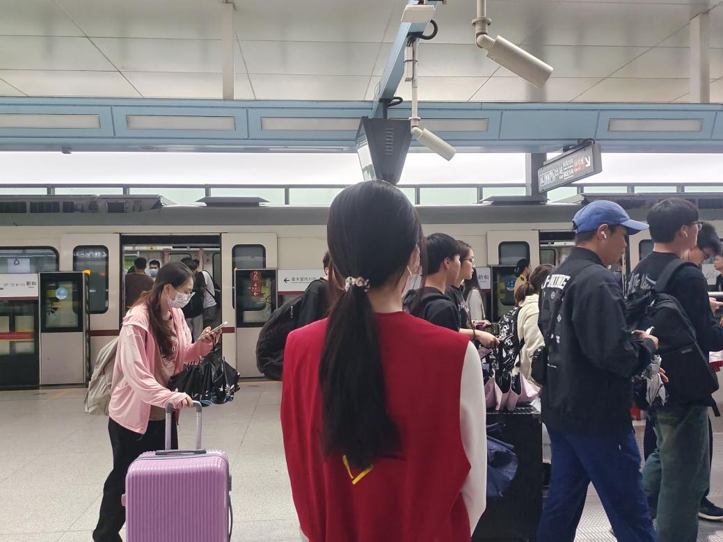 接下来,志愿者们按照任务安排,分别在入闸口、扶梯和站台等区域开展志愿服务。负责入闸口区域的志愿者关注乘客在闸机处的通行情况,帮助乘客解决乘车码异常问题以及协助行李安检,以避免进闸通行能力与实际客流通过能力不匹配,造成客流拥挤。扶梯区域的志愿者负责引导乘客前行至站台中部候车,避免因为扶梯口客流拥堵而产生事故。站台区域的志愿者来回巡逻查看是否存在乘客在站台处打伞、冲门上车、跨越站台屏蔽门等危险行为并及时制止,提醒乘客不可越过黄色安全线、给迷路的乘客指引路线、举牌提示终点站等。