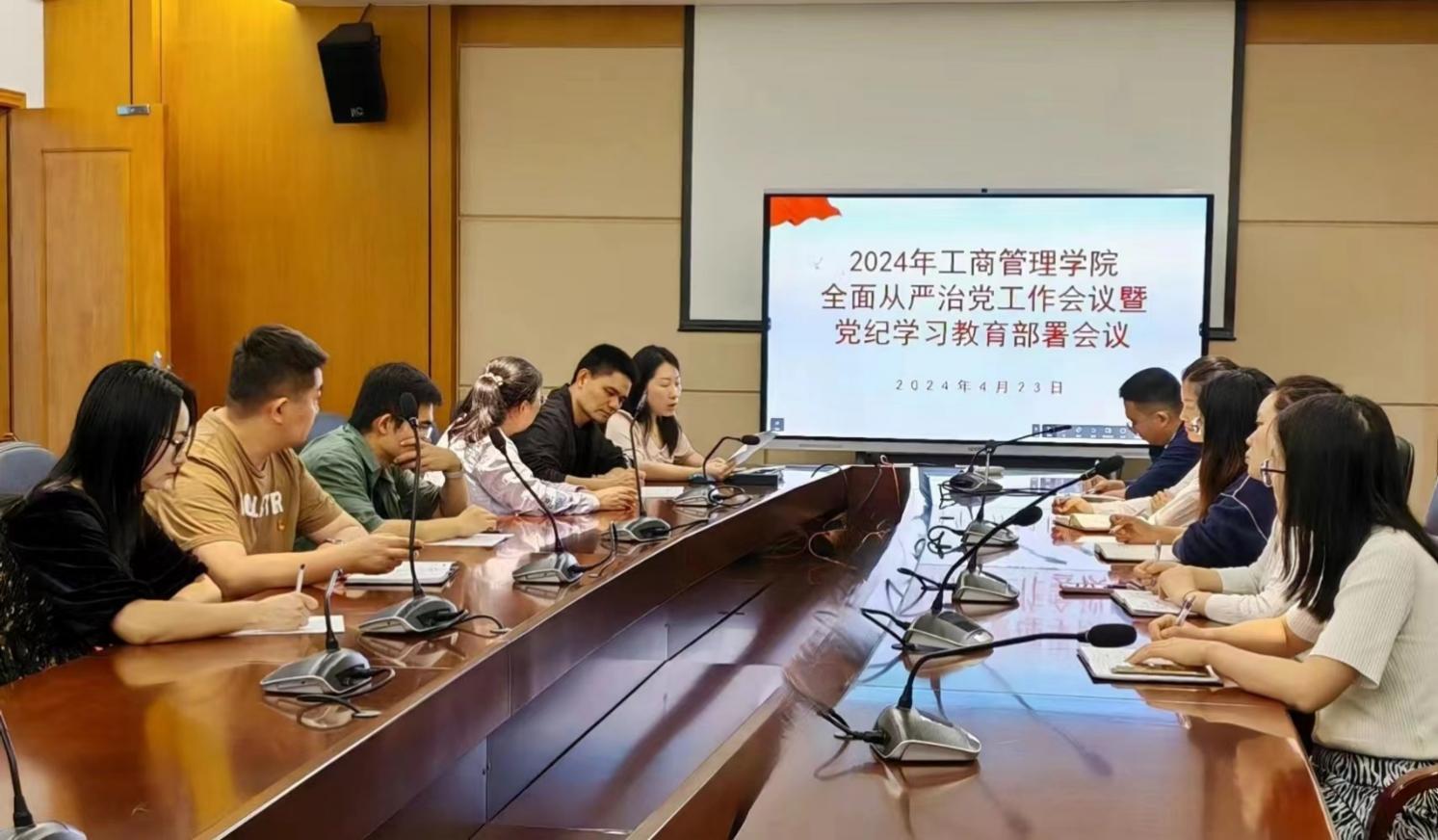 4月23日上午,工商管理学院在明德楼1-201召开2024年学院全面从严治党工作会议暨党纪学习教育动员部署会议,工商管理学院班子、党总支支委、师生党支部支委参会,学院党总支书记周清莲主持会议。