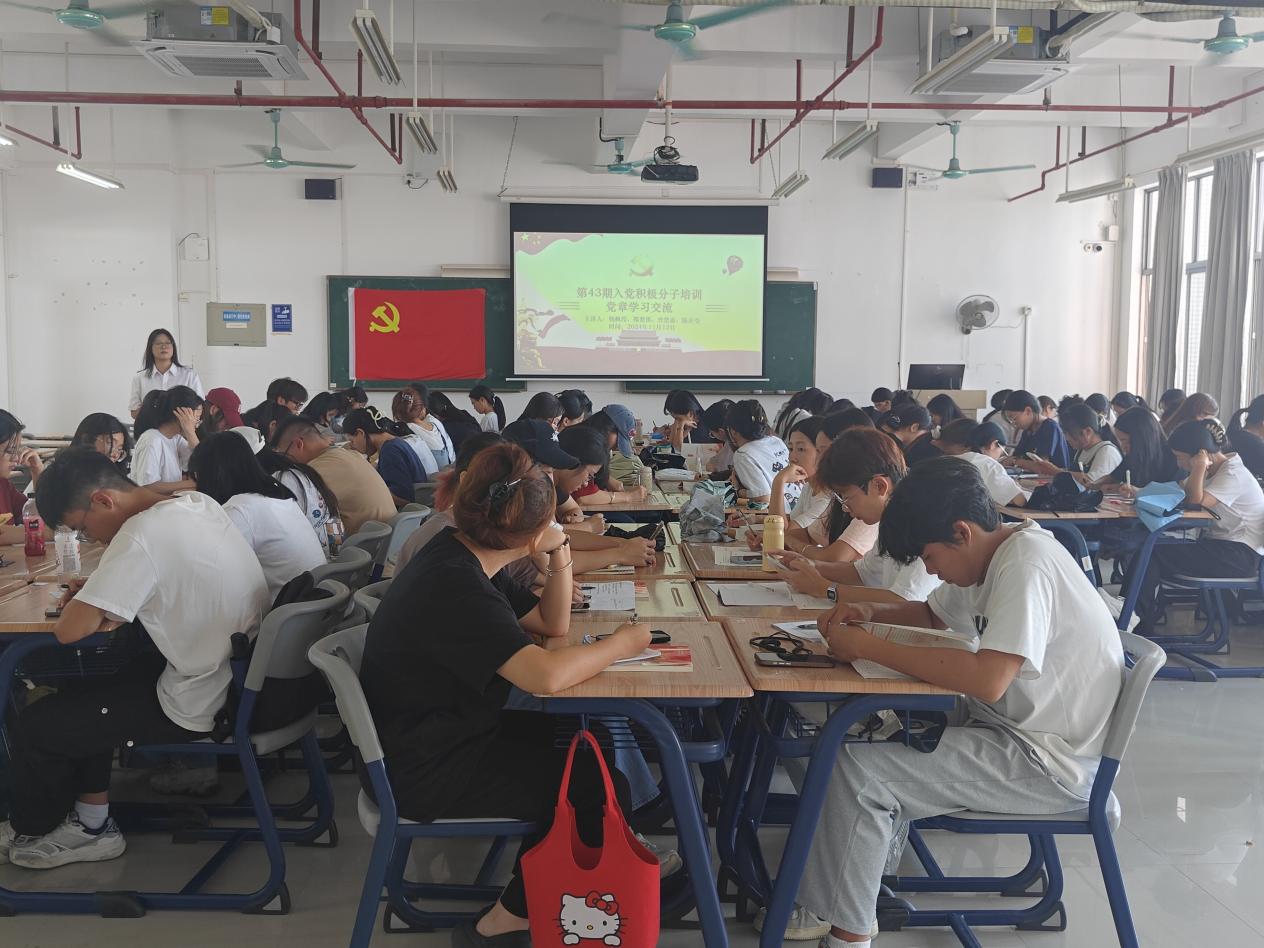 为扎实开展第四十三期入党积极分子党课培训工作,进一步提升入党积极分子的思想认识,增强党性修养,提高政治素养,20241112日,工商管理学院党总支在明德楼2-601教室开展了党章学习交流会。
