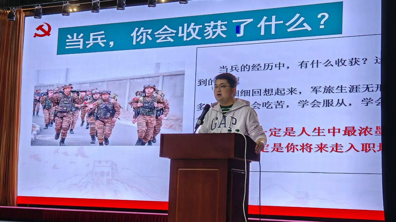 随后,谢简向毕业生作了最新就业政策的解读,并讲解了大学生就业创业系统的操作和就业协议填报规范。王丹则通过分享军旅感悟,动员毕业生响应国家号召,积极应征入伍。
