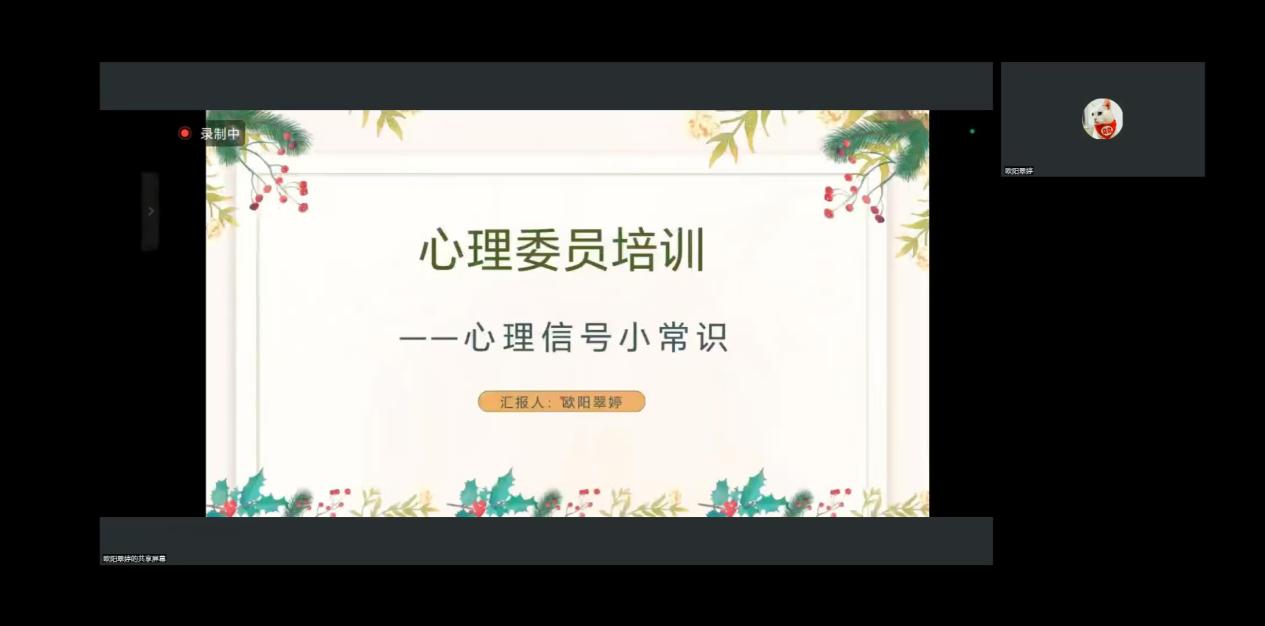 为全面提升学院心理健康教育工作的质量,进一步激发心理委员的责任感,明确其职责范围,提升专业技能与综合素养,以便更好地为班级同学提供全面的心理帮助,共同营造一个充满活力、积极向上的班级氛围。1211日晚上,工商管理学院二级心理辅导站线上举行了月心理健康教育培训会。学院心理辅导站站长欧阳翠婷以及2023级、2024级全体心理委员和全体宿舍长参与了培训会议。