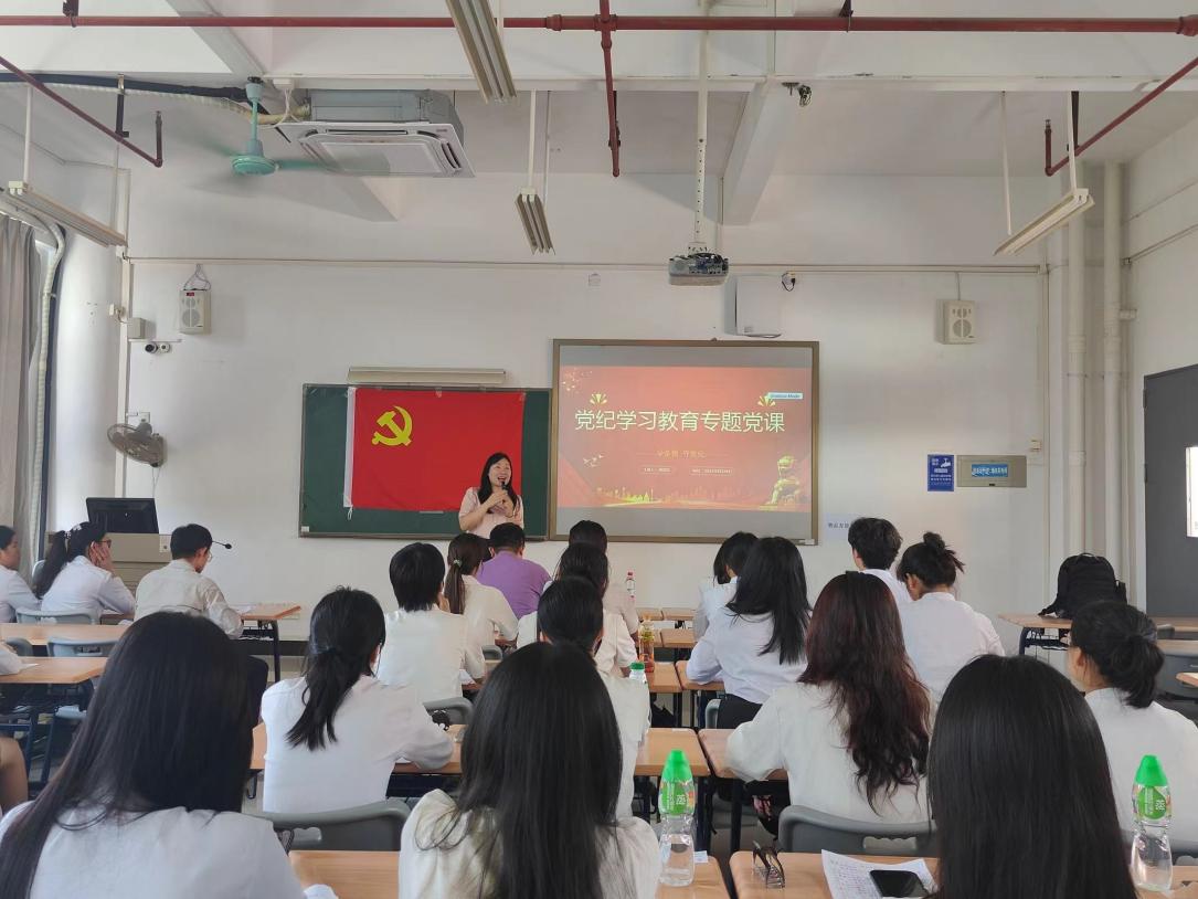 为了进一步巩固党纪学习教育实效,筑牢支部党员学纪、知纪、明纪、守纪意识,2024年6月20日下午,工商管理学院党总支书记周清莲到所联系的支部开展党纪学习教育专题党课,学院学生第二党支部全体党员参加。