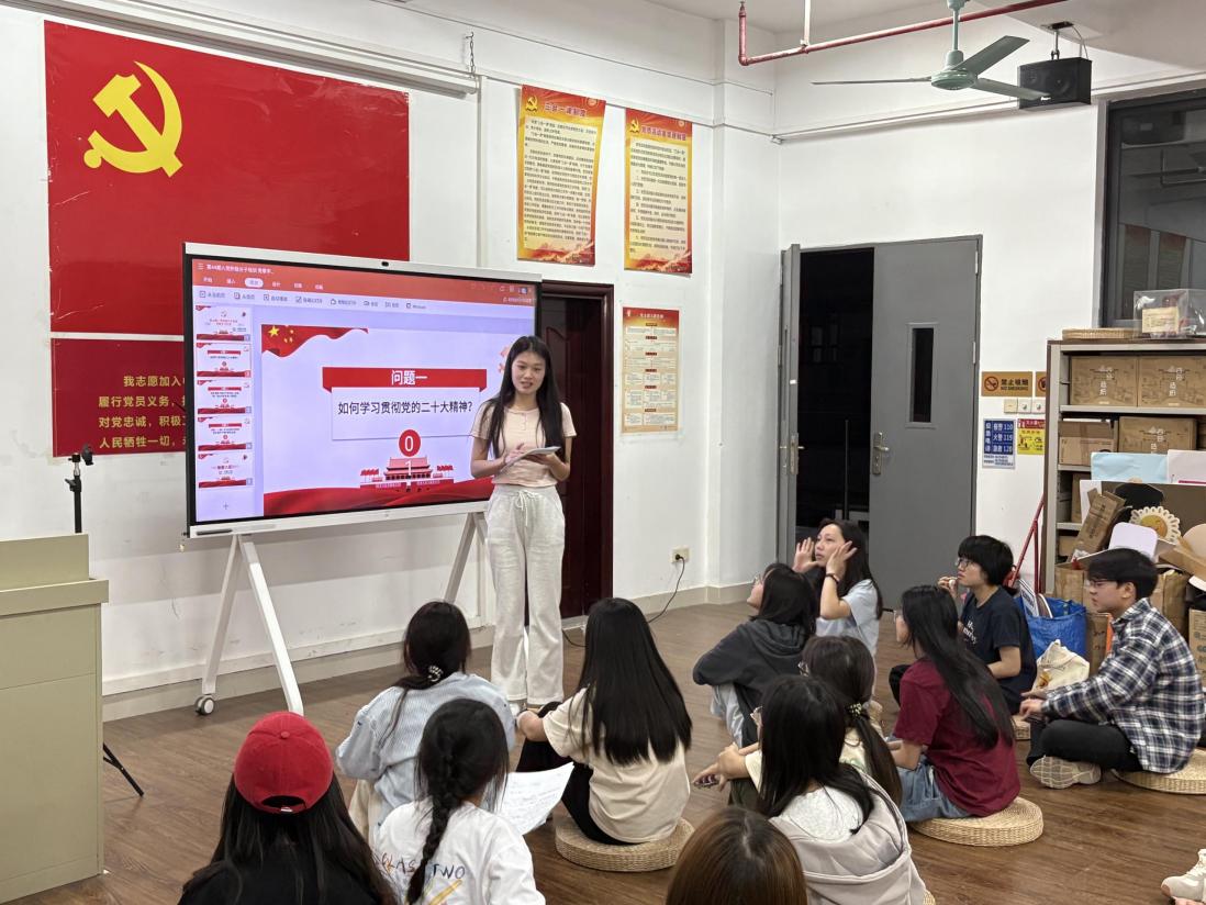 416日晚,入党积极分子们在实训楼514围坐,一起进行党章学习交流。活动构建"三维研学体系":通过"党章知识擂台赛"夯实理论基础,开展"初心故事会"传承红色基因,组织"发展蓝图设计赛"畅想使命担当。围绕"中国式现代化与商科人才培养"等命题,学员们结合工商管理专业特色,形成"智慧党建+数字经济"融合方案。在"向党说句心里话"环节,工商管理专业学生运用多语种诵读党章选段,展现新时代青年国际视野。