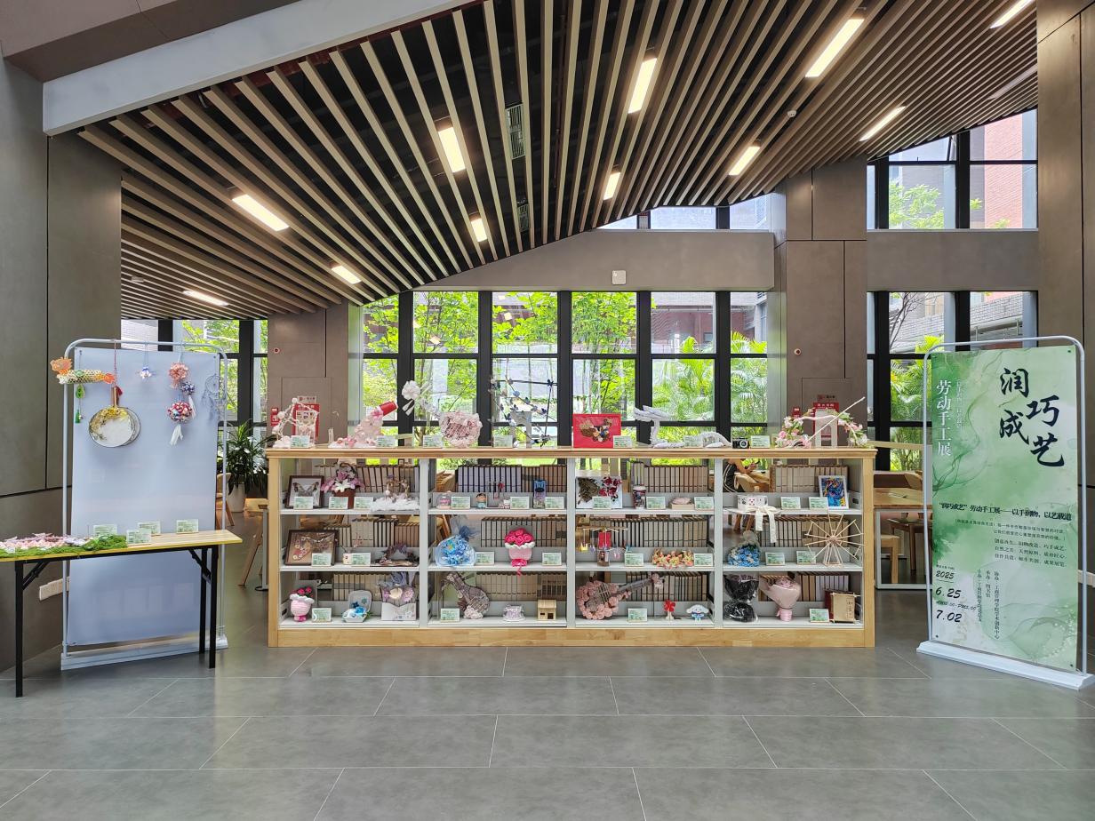 2025年6月26日,由工商管理学院党总支主办、图书馆承办的 “润巧成艺”劳动手工展在图书馆正式开展。本次展览以“以手润物,以艺载道”为主题,引导学生巧妙利用废旧材料与自然原料创作手工艺品,旨在传递绿色环保理念,激发学生文化创新创造活力,推动中华优秀传统文化传承创新。展览将持续至7月4日。